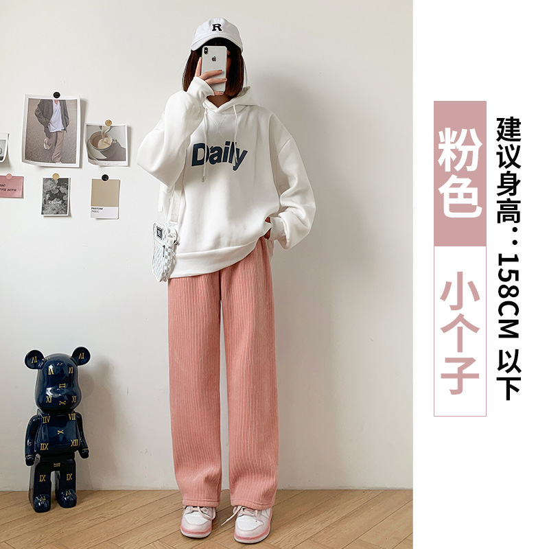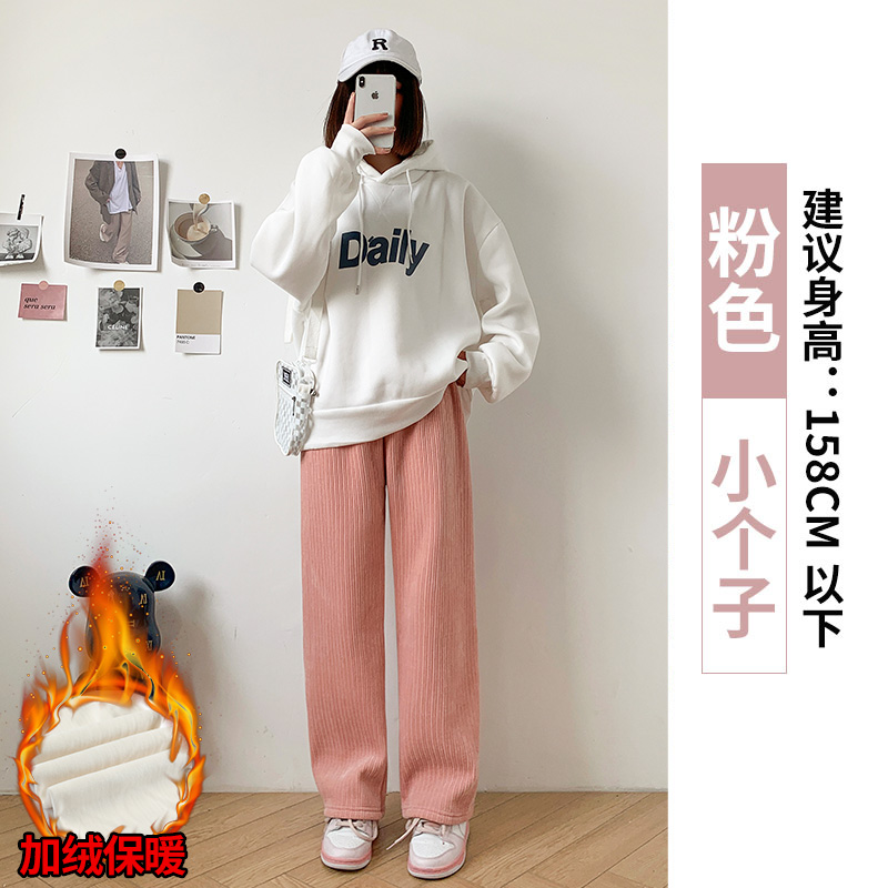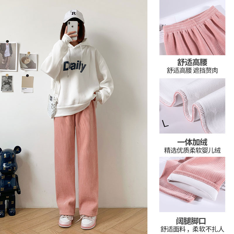 Chenille 넓은 다리 바지 여성 바지 2024 새로운 가을과 겨울 아이보리 스트레이트 작은 겨울 기모 끈적 끈적한 쌀 바지스토어 가기