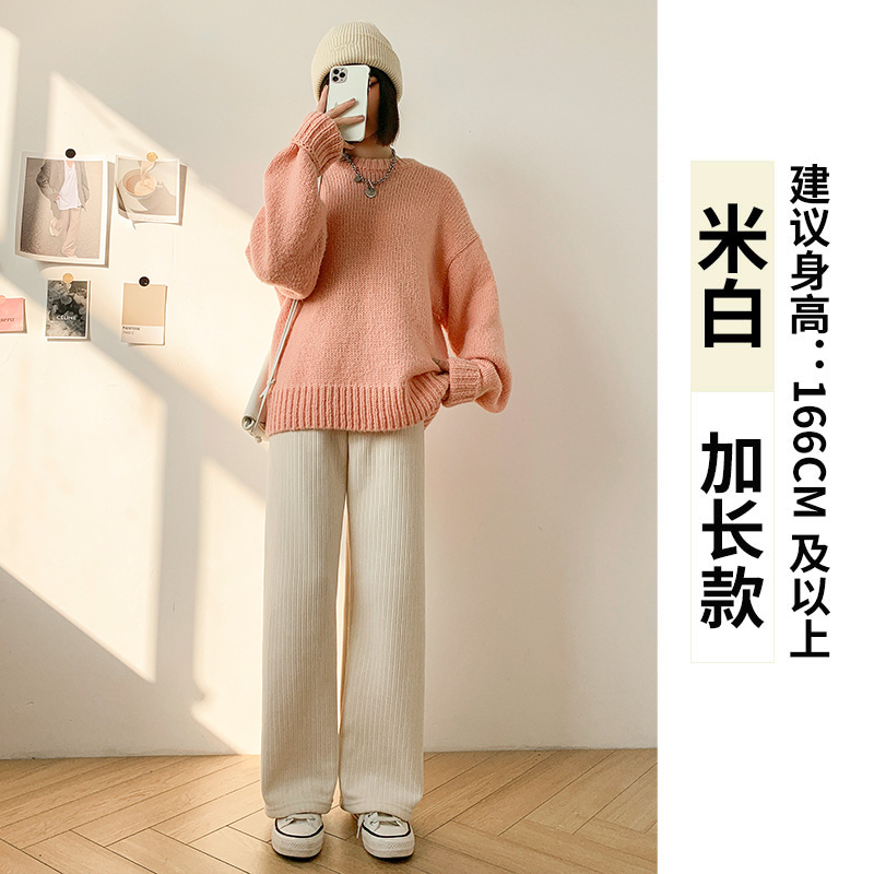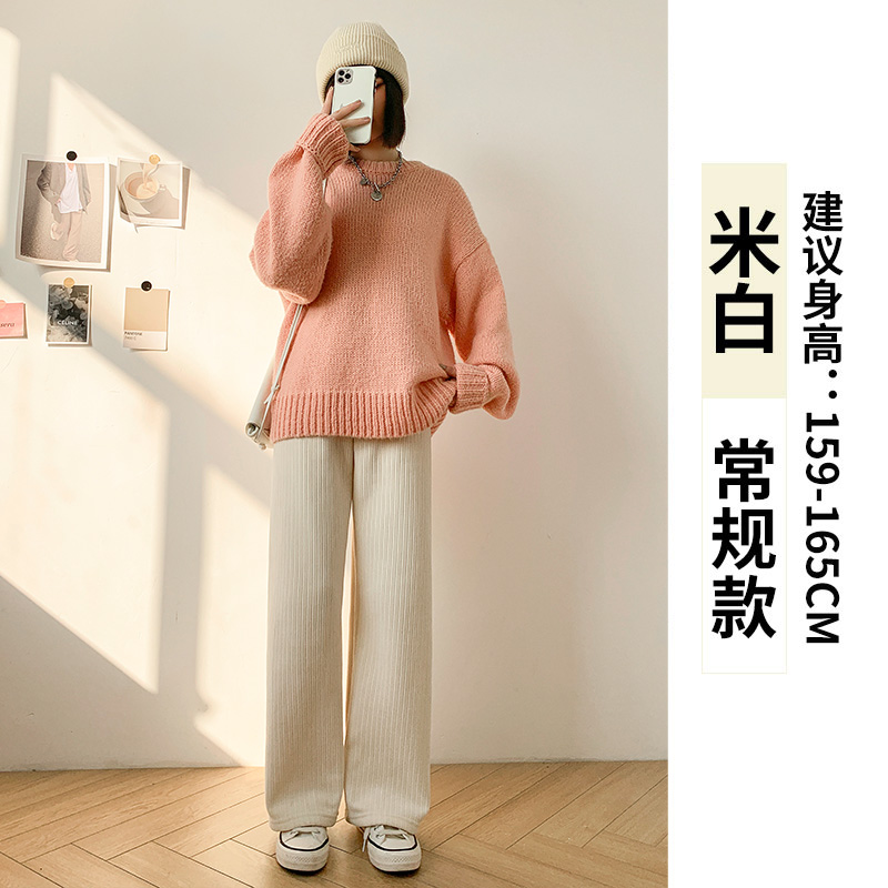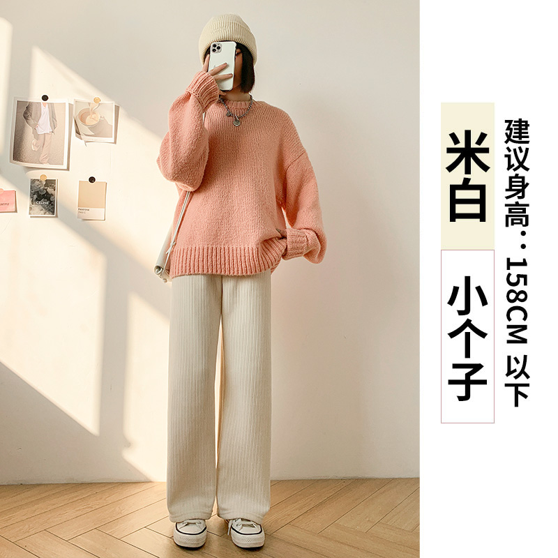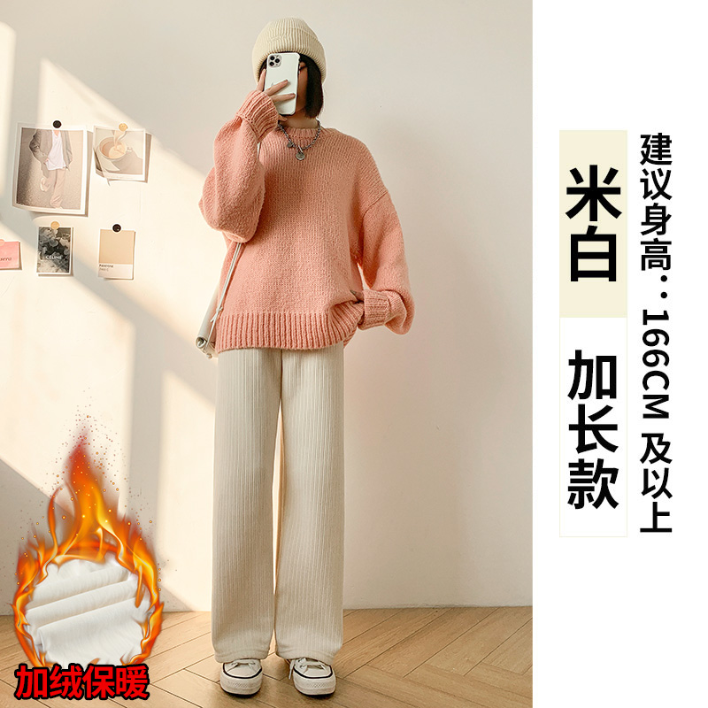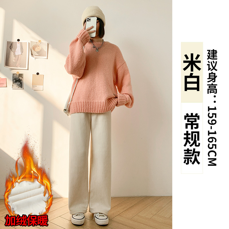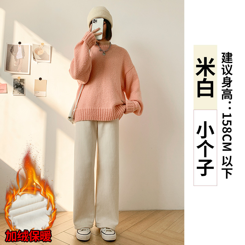 Chenille 넓은 다리 바지 여성 바지 2024 새로운 가을과 겨울 아이보리 스트레이트 작은 겨울 기모 끈적 끈적한 쌀 바지