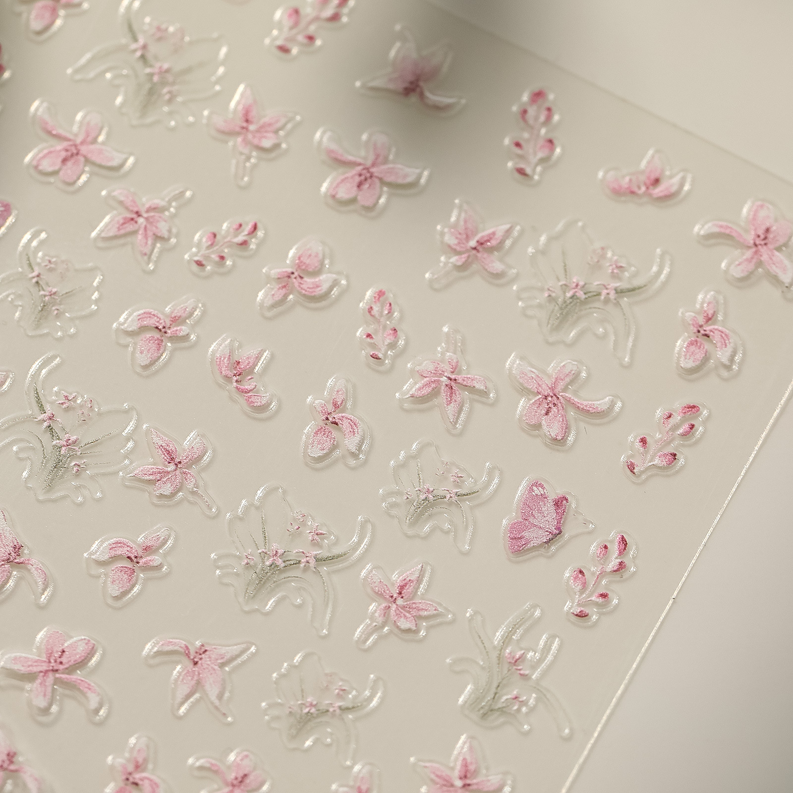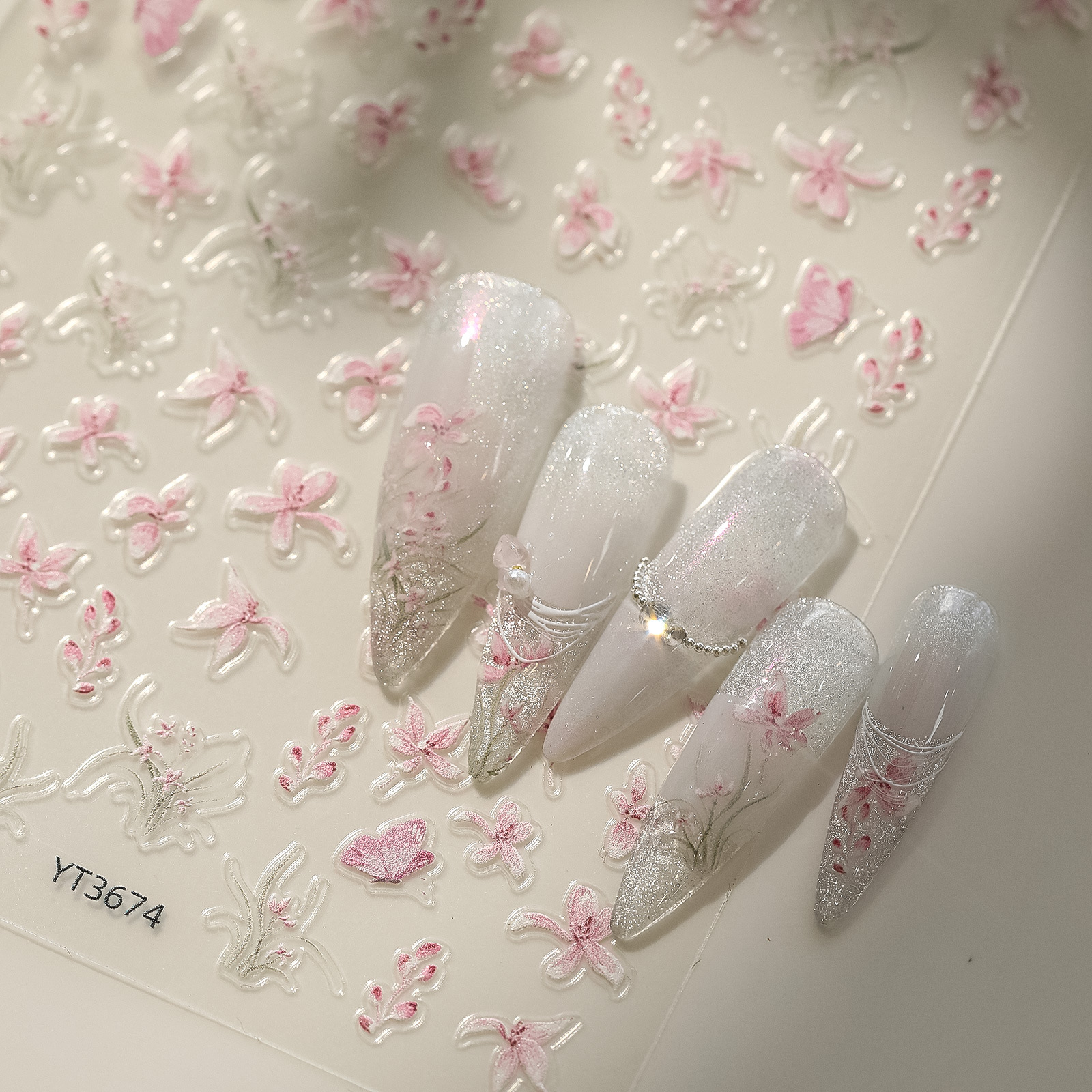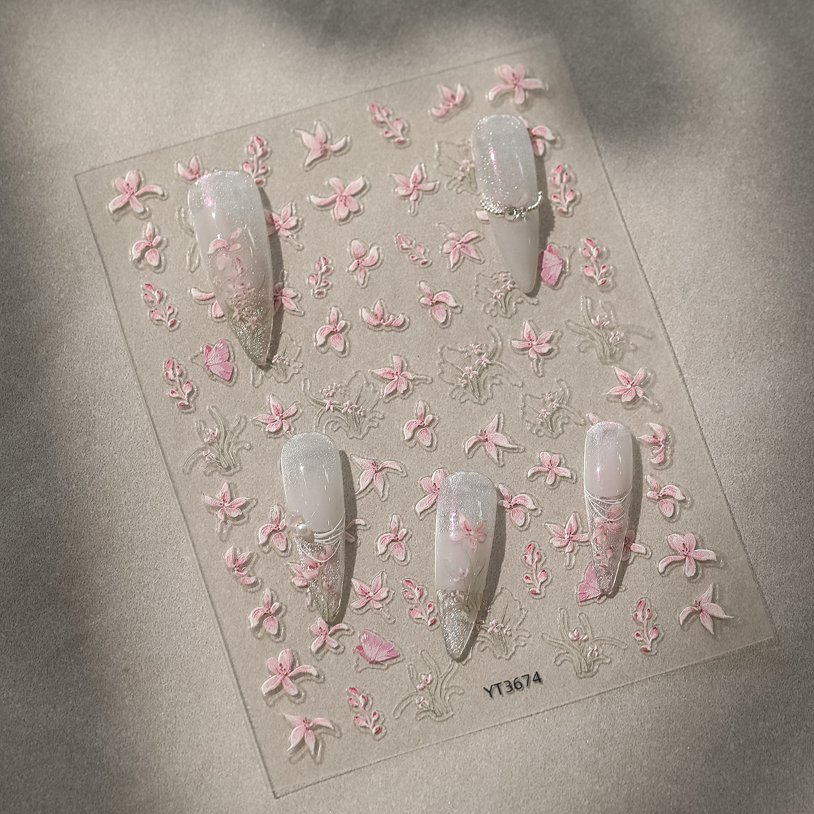 개미 그림 YITU 블루 꽃잎 릴리프 네일 아트 스티커 스테레오 나비 핑크 꽃 접착제 네일 스티커 YT3674