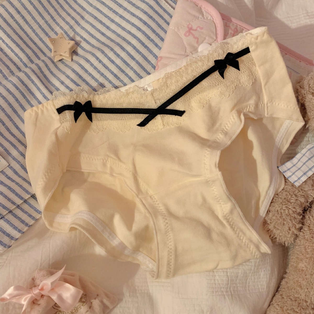 달콤한 꿈 소녀 일본 스타일 나무 귀 중간 허리 여성의 레이스 섹시한 속옷 순수한 코튼 크로 치 소녀의 브리프 편안한스토어 가기