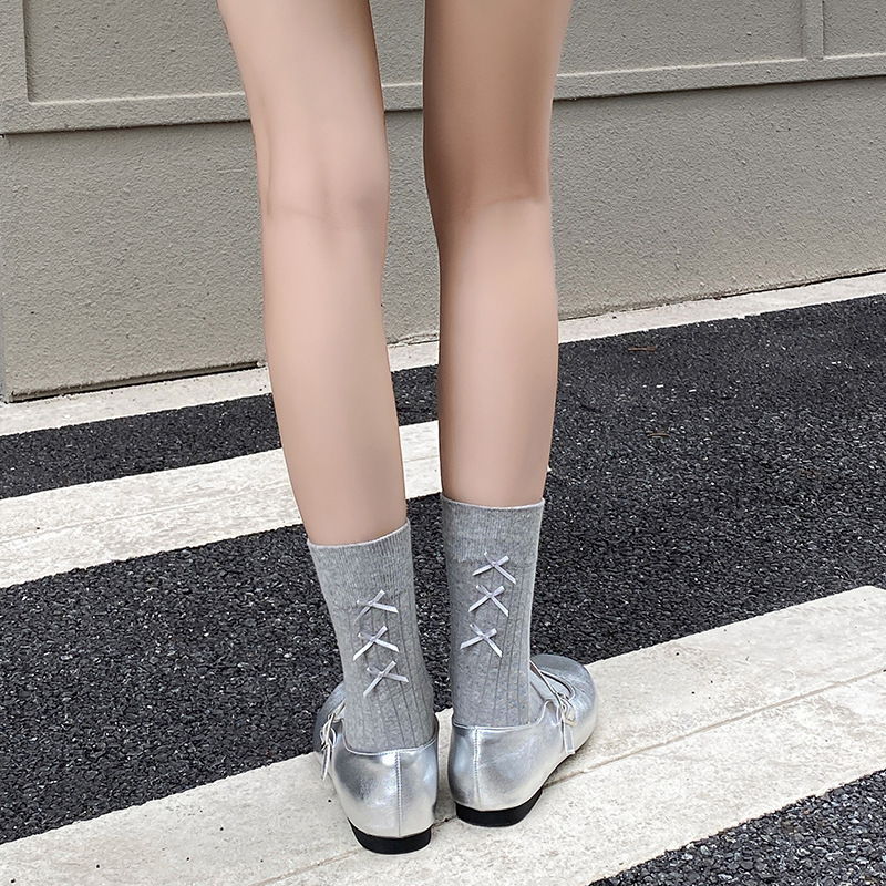 일본 발레 스타일 달콤한 활 양말 여성 Instagram 스타일 봄 및 가을 의류 메리 제인 신발 소녀 스택 양말스토어 가기