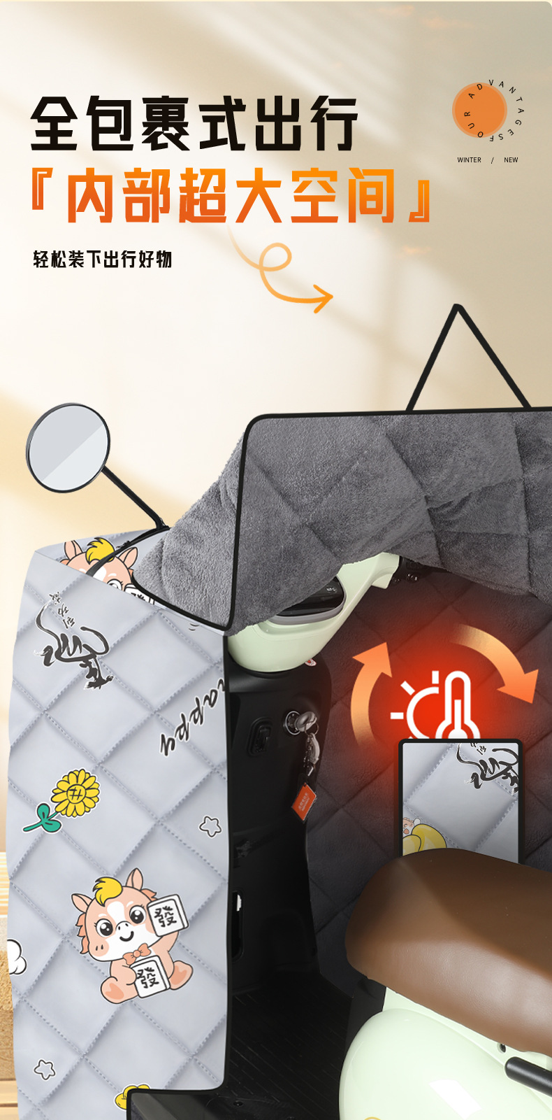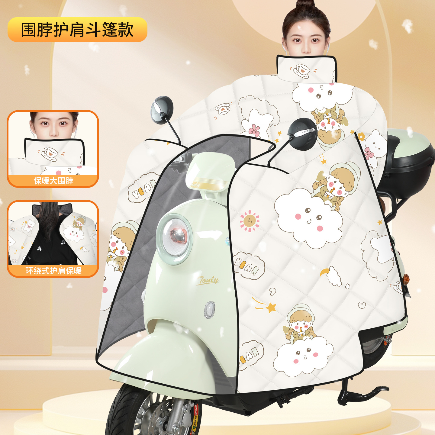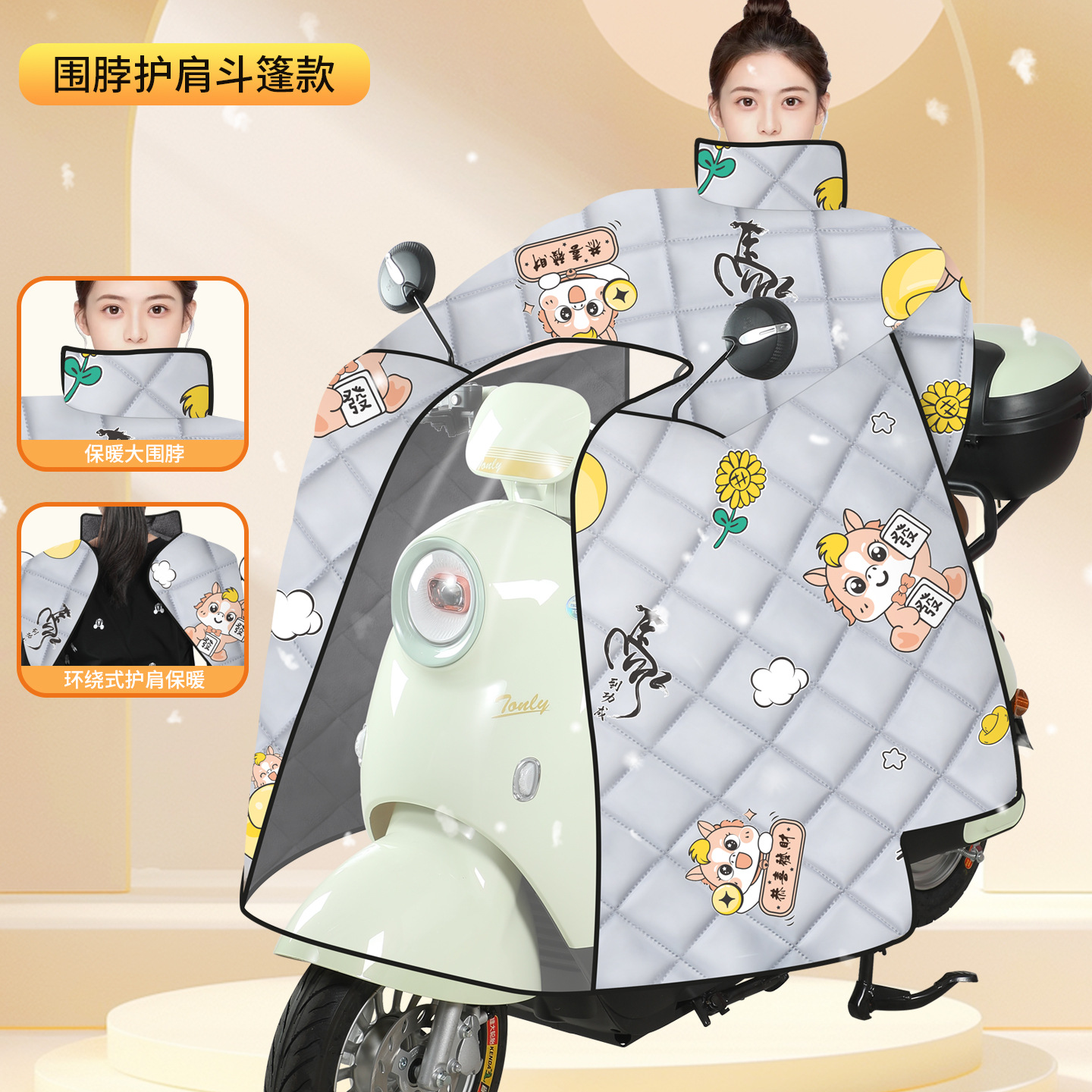 겨울철 전기차 앞유리, 벨벳과 두툼한 올인클루시브 망토, 배터리 확대, 오토바이 방풍 커버, 보온 및 방한스토어 가기