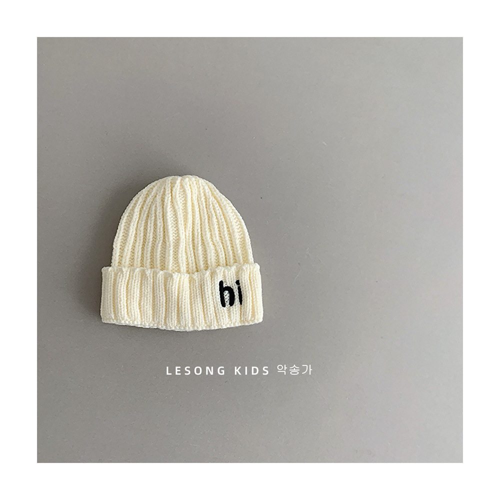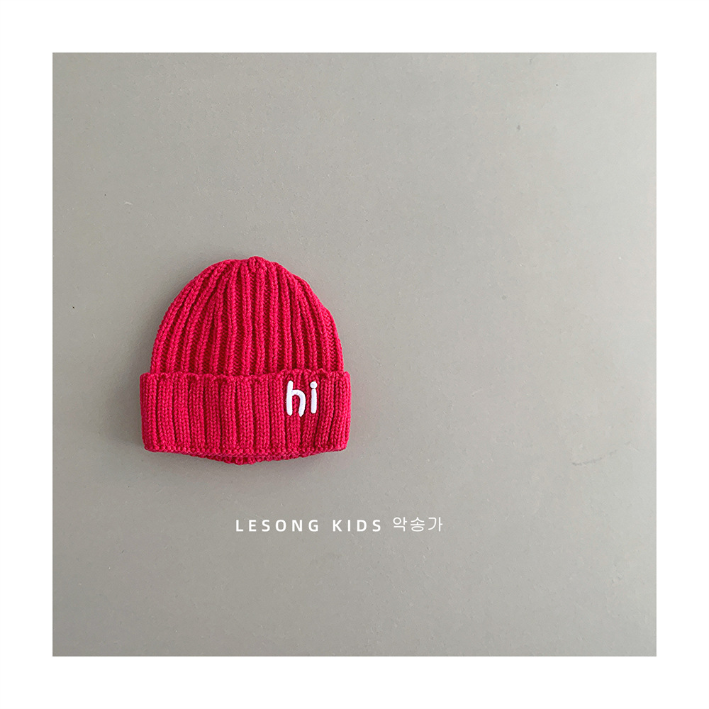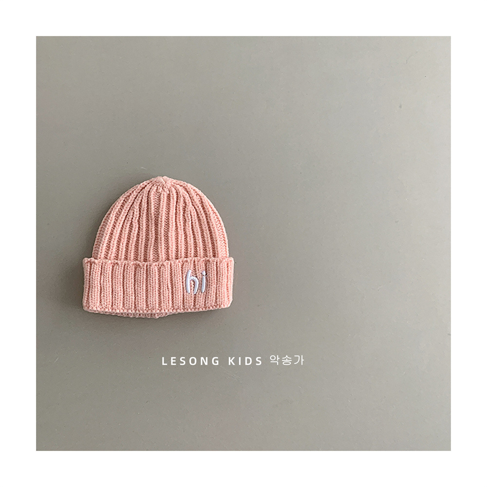 한펑 캔디 컬러 어린이 올매치 편지 자수 니트 모자 가을과 겨울 어린이 아기 따뜻한 울 풀오버 모자