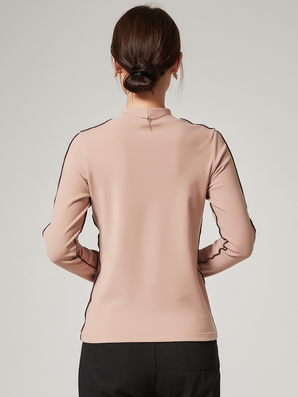 가을과 겨울 새로운 내부 슬림베이스 셔츠 여성의 높은 수준의 긴 소매 티셔츠 반 하이 칼라 슬림 외부 착용 탑스토어 가기