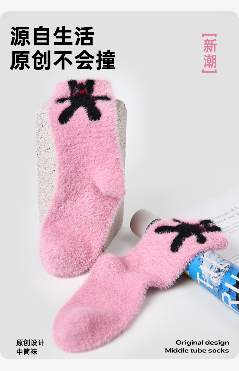 르네상스 양말 여성의 가을과 겨울 기모 두꺼운 귀여운 핑크 고양이, 트렌디 한 모조 밍크 벨벳 튜브 양말스토어 가기