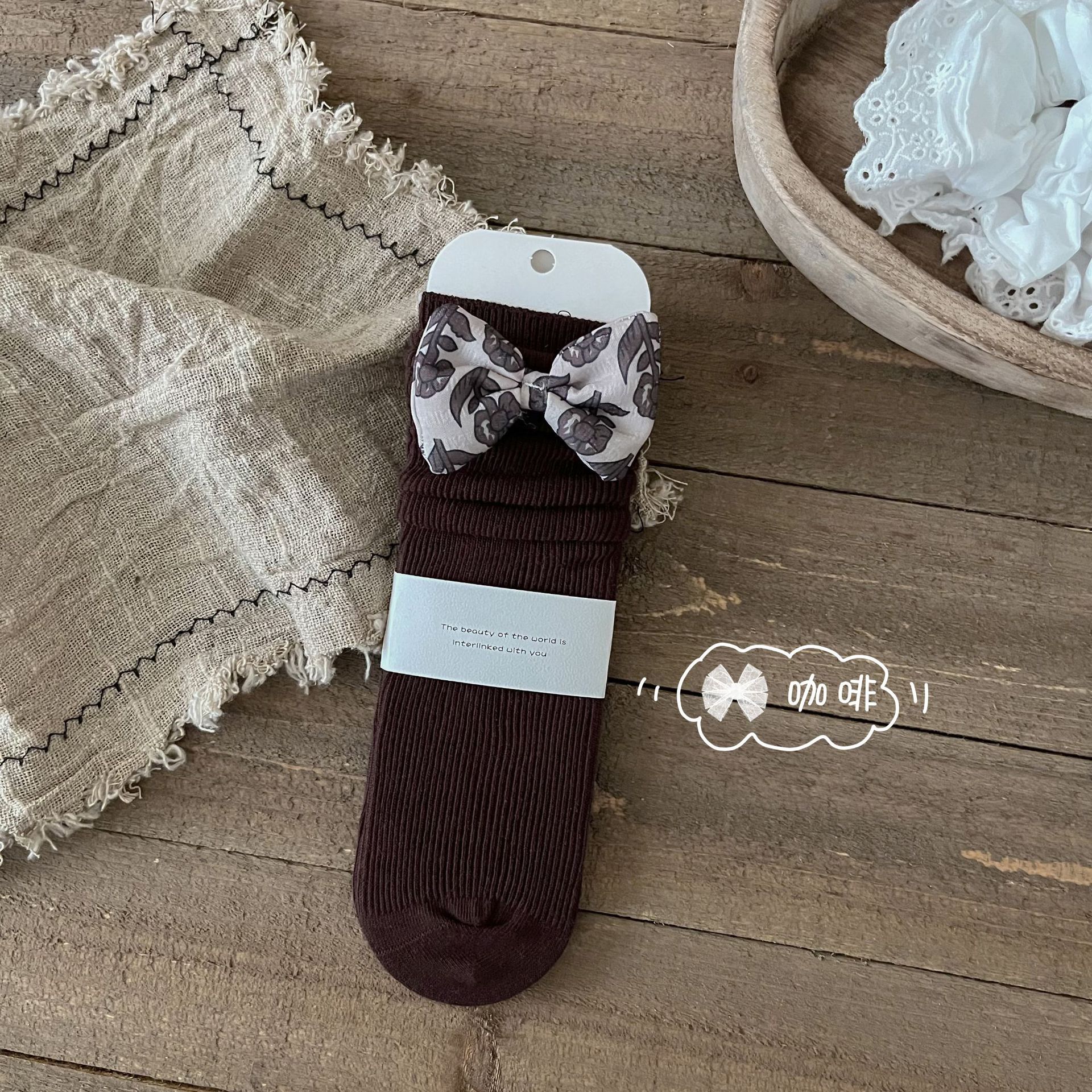 24 가을 새로운 어린이 양말 아기 일본 활 빗질면 튜브 양말 공주 바람 더미 양말스토어 가기
