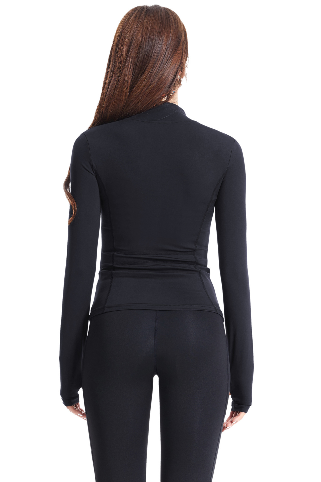 나일론 스포츠 코트 여성의 겨울 손가락 지퍼 긴 소매 피트니스 탑 야외 훈련 달리기 요가 의류