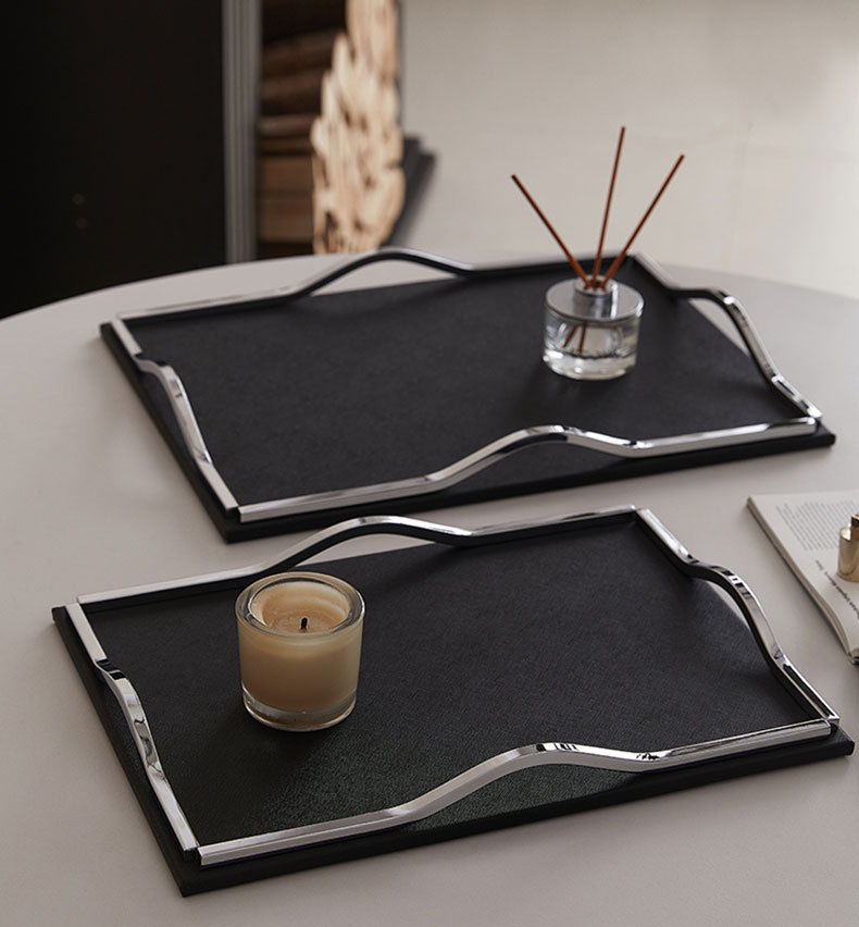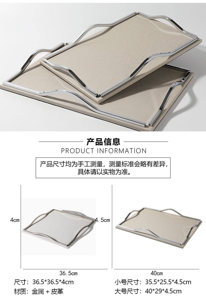 현대 가벼운 고급 가죽 금속 트레이 장식 호텔 모델 룸 거실 커피 테이블 식탁 저장 판 욕실 아로마 테라피