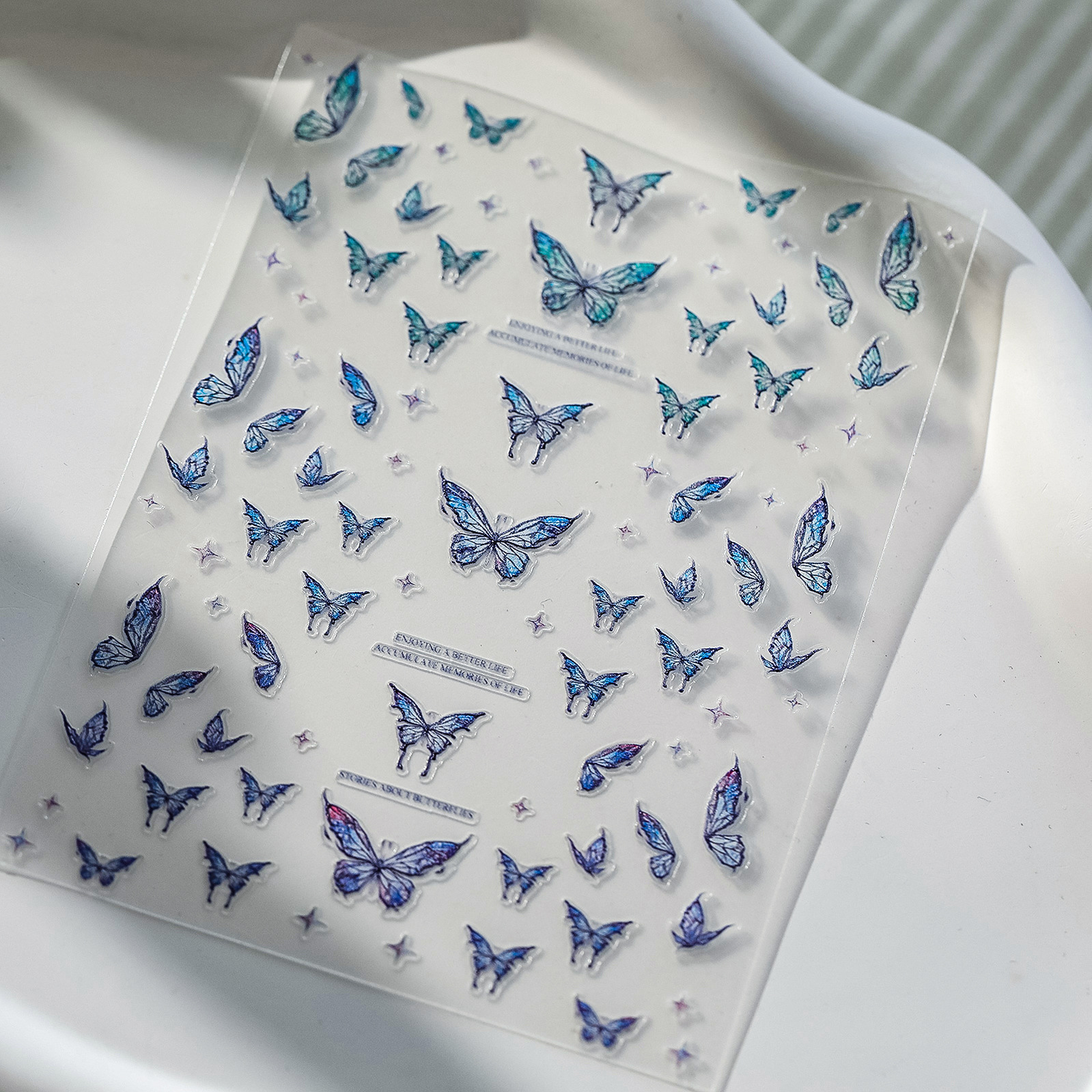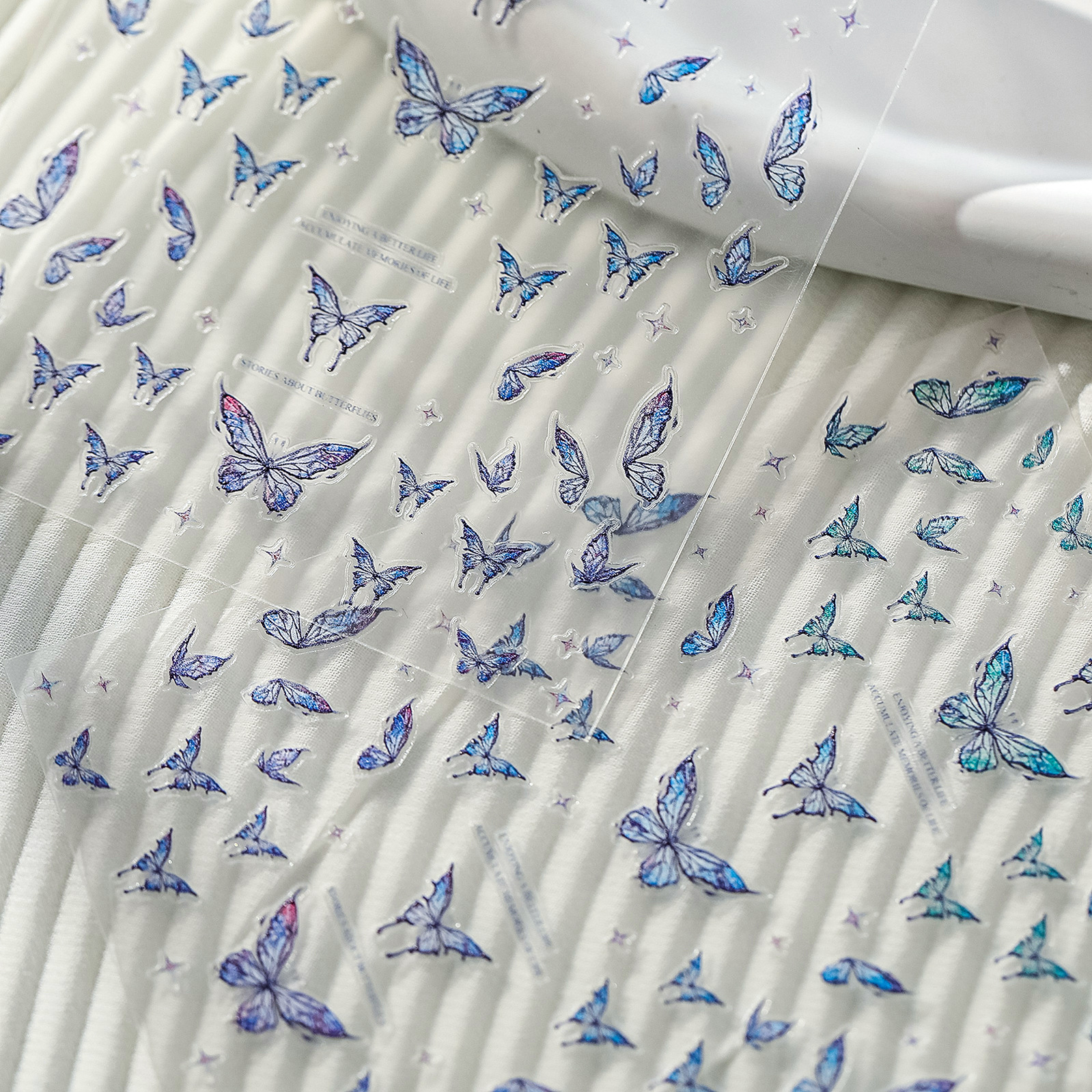 개미 그림 YITU 블루 나비 네일 아트 스티커 스테레오 릴리프 접착 크리스탈 나비 스타 매니아 네일 장식 스티커스토어 가기
