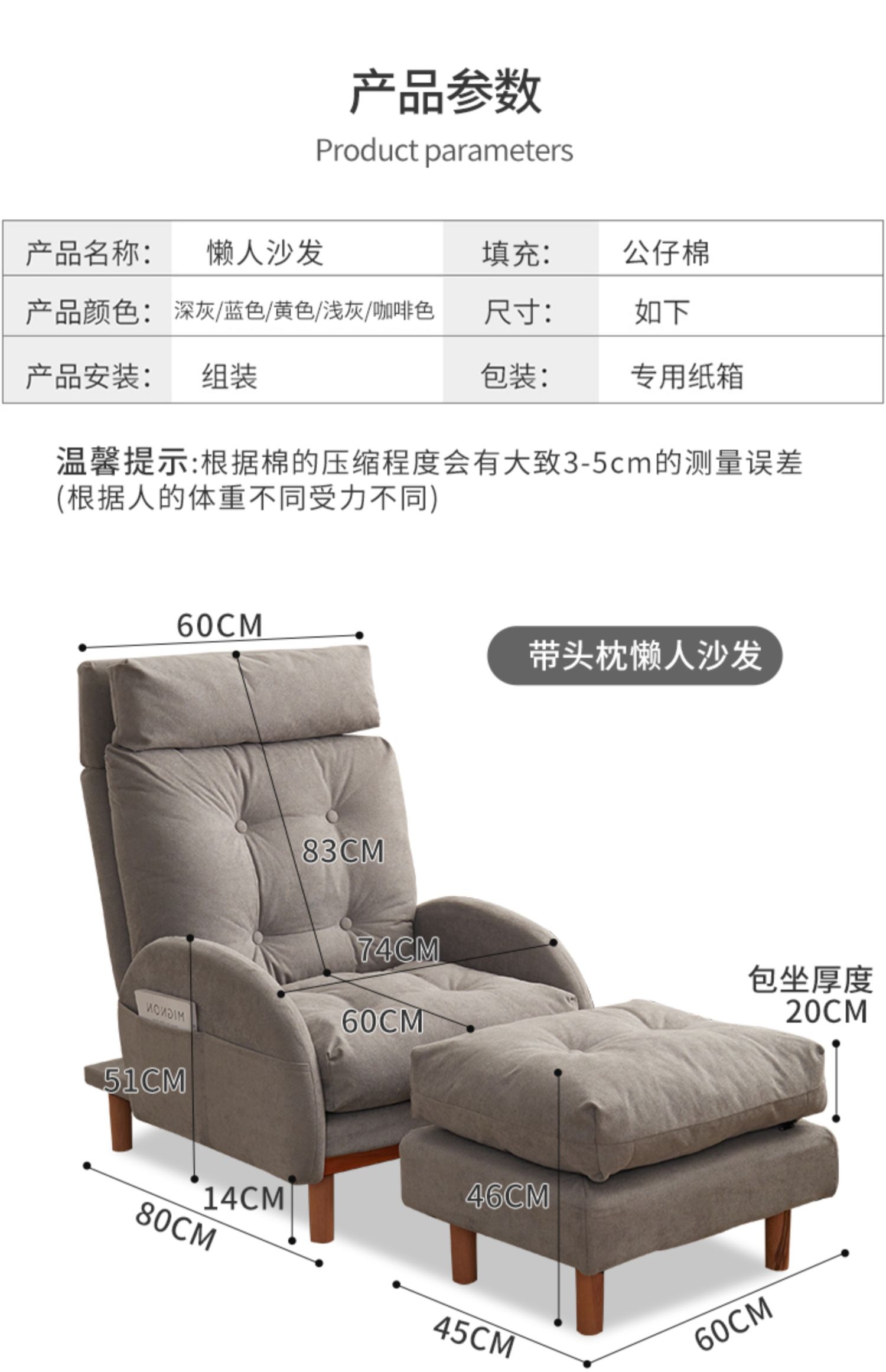 A9L 싱글 소파 작은 아파트 게으른 의자 누워 잠자는 발코니 레저 임산부 작은 소파 침대 침실스토어 가기