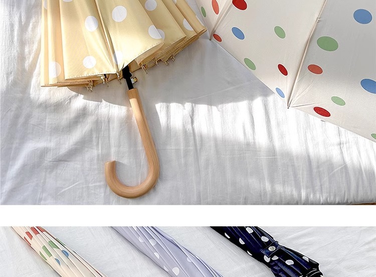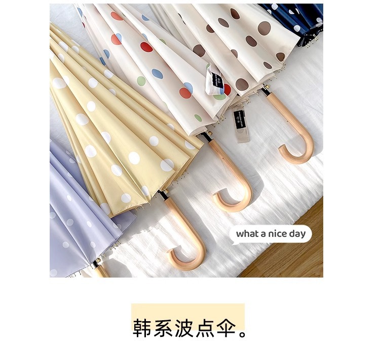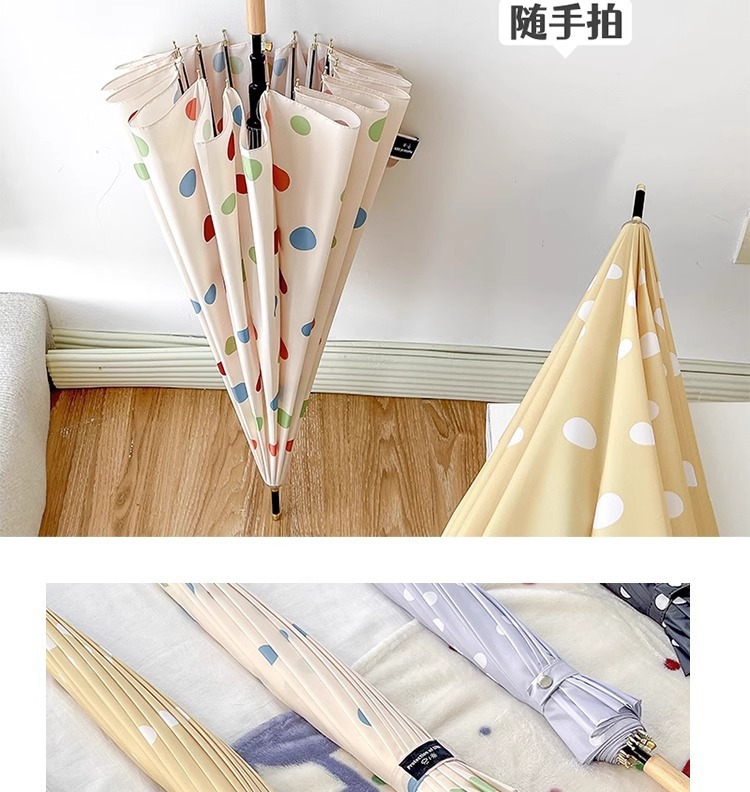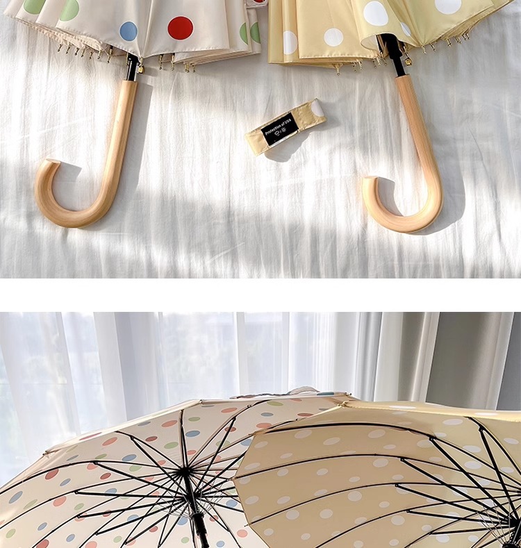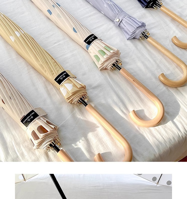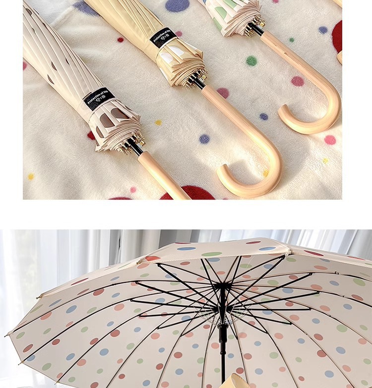 • 긴 손잡이 16본 호두나무 우산 손잡이, 캐러멜 도트 무늬