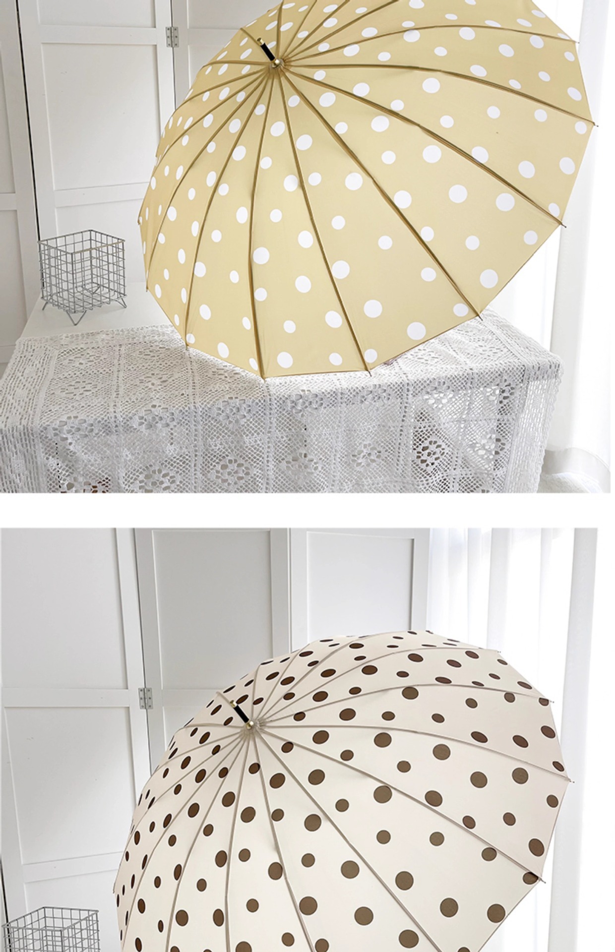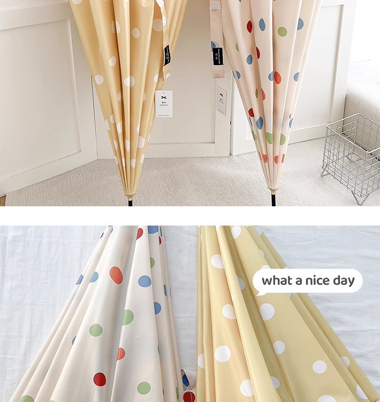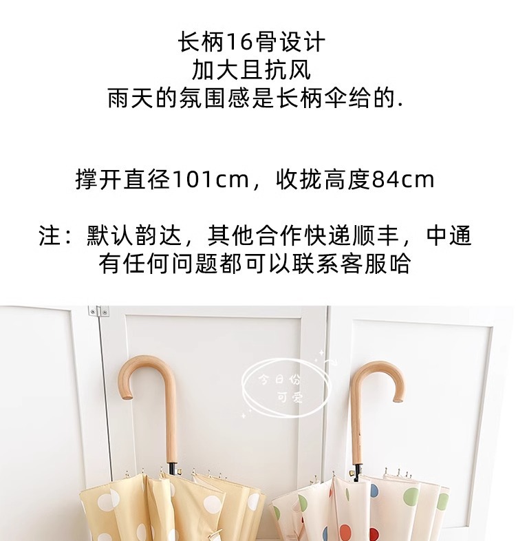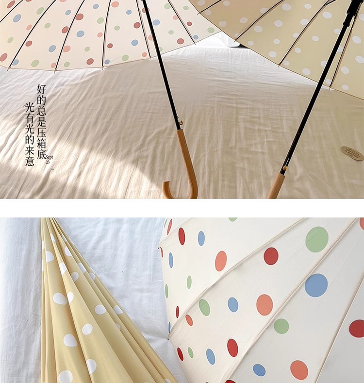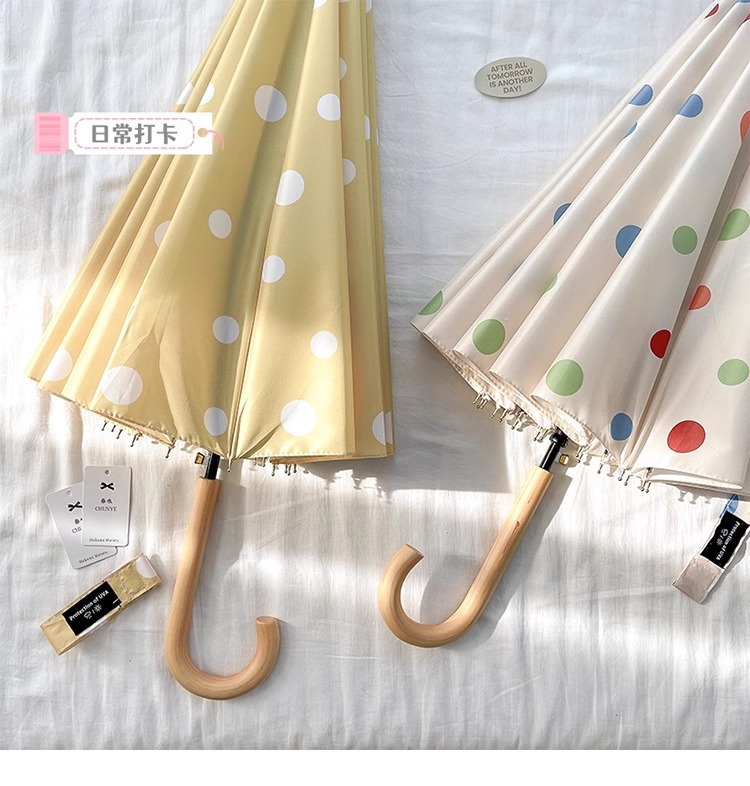 • 긴 손잡이 16본 호두나무 우산 손잡이, 캐러멜 도트 무늬