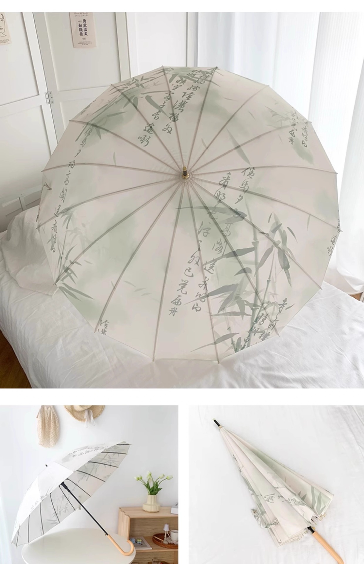 • 긴 손잡이 8본 스트라이크 천 꽃무늬 체크무늬