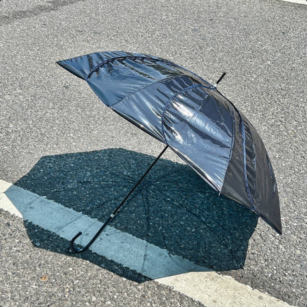 • 긴 손잡이 투명 꽃 우산 네이비 블루