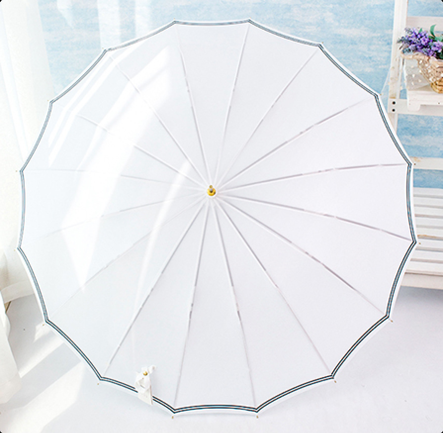 • 긴 손잡이 흰색 16본 스트라이크 천 블루 체크 소녀
