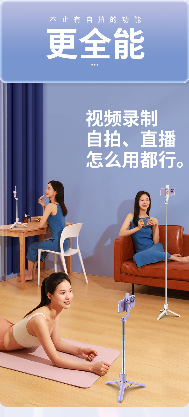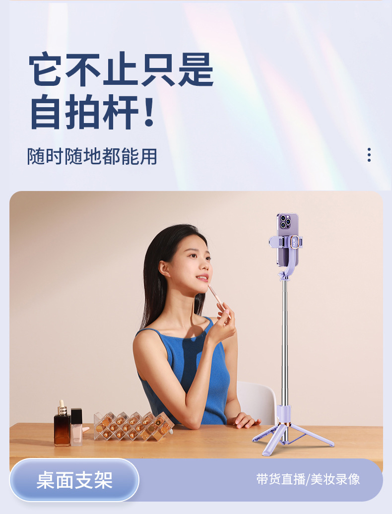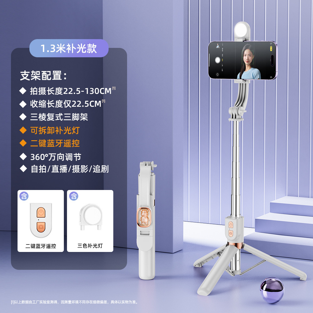 20241.3m 충전식 셀카봉 삼각대 휴대폰 사진 촬영 360도 회전 여행용 스탠드 블루투스