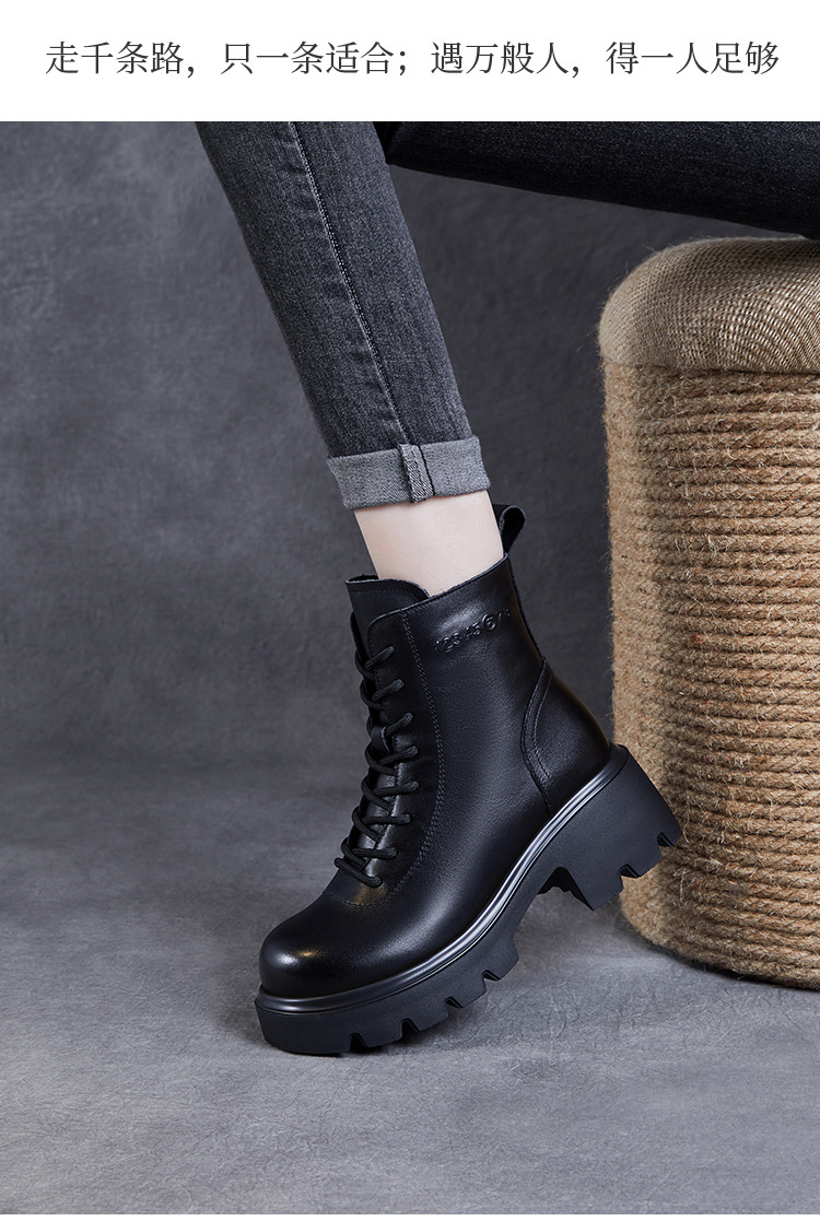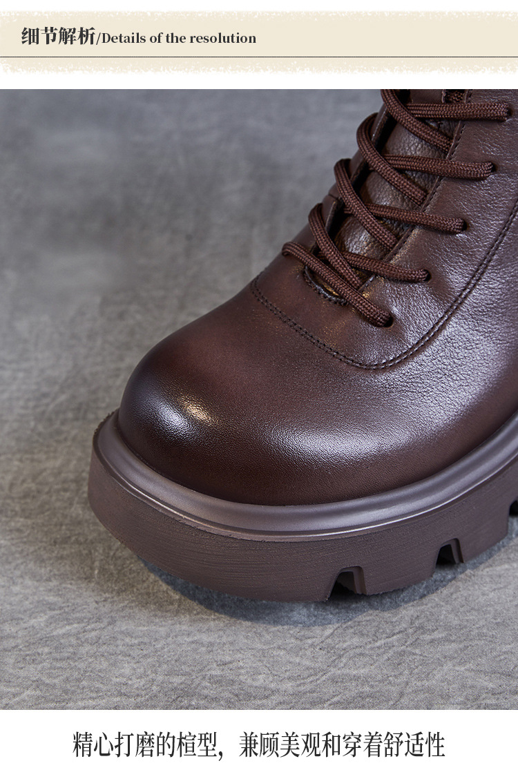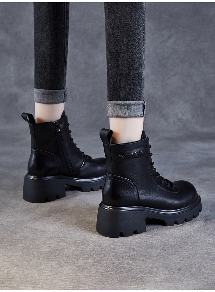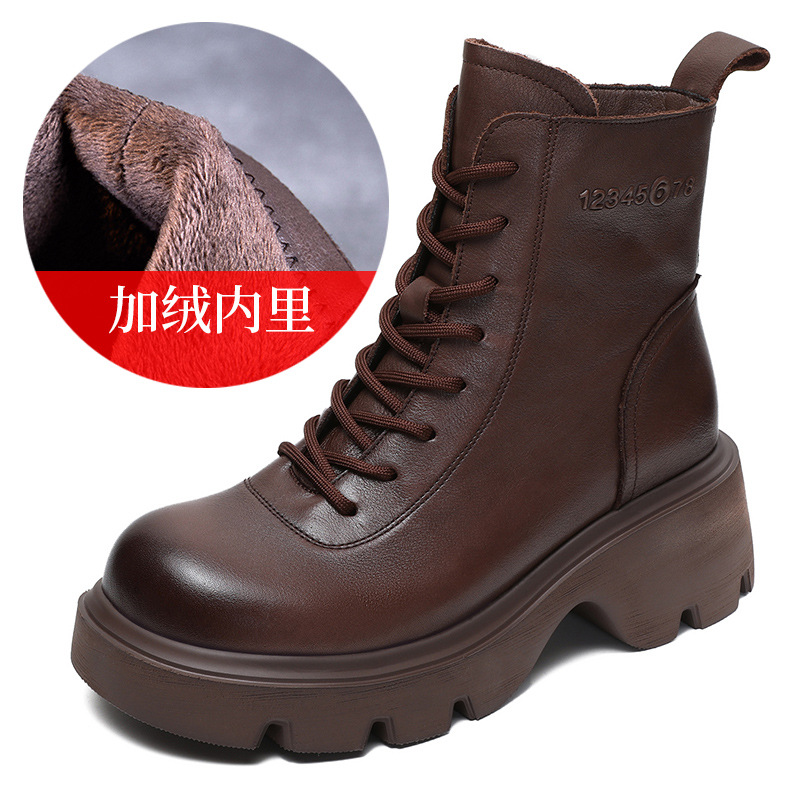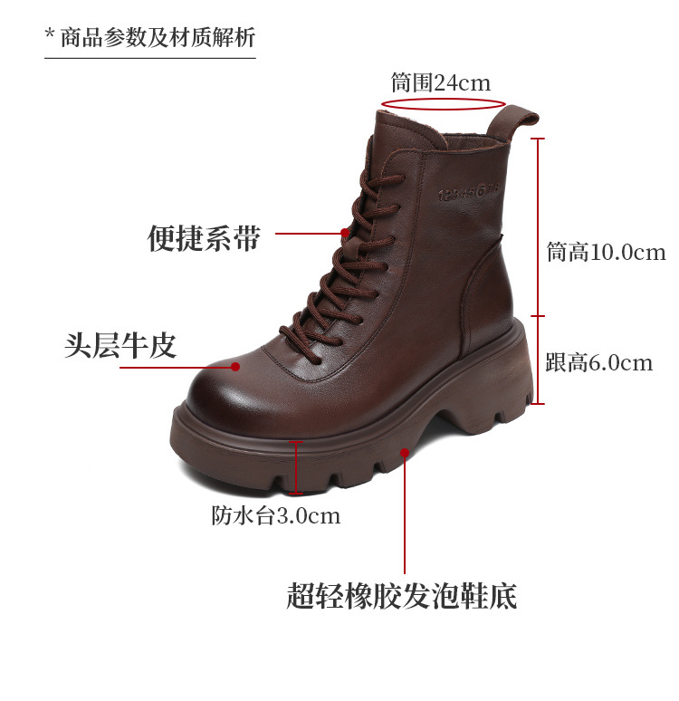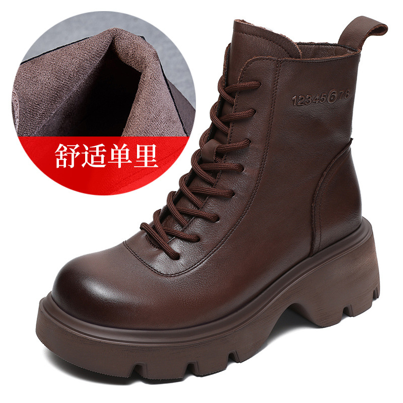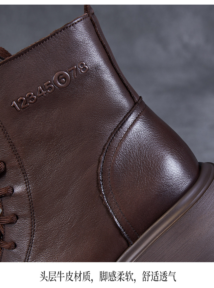 탑 레이어 소 가죽 두꺼운 밑창 마틴 부츠 여성의 2024 가을 및 겨울 새로운 빈티지 강화 짧은 튜브 기모 레이스 업 짧은 부츠 여성 신발스토어 가기