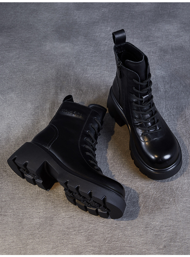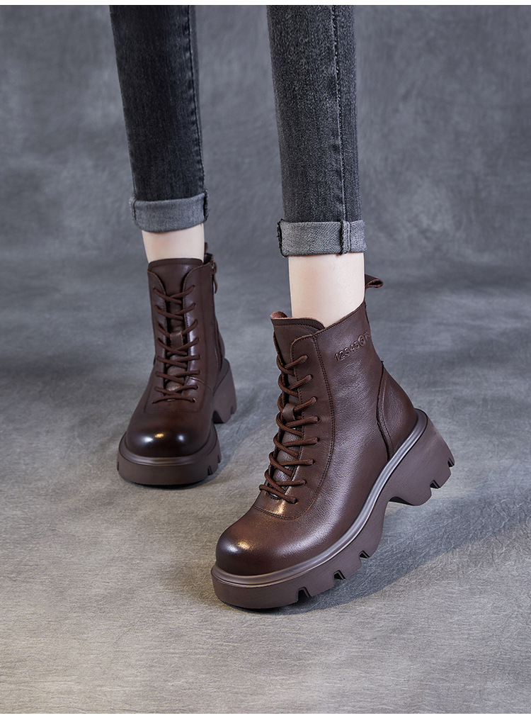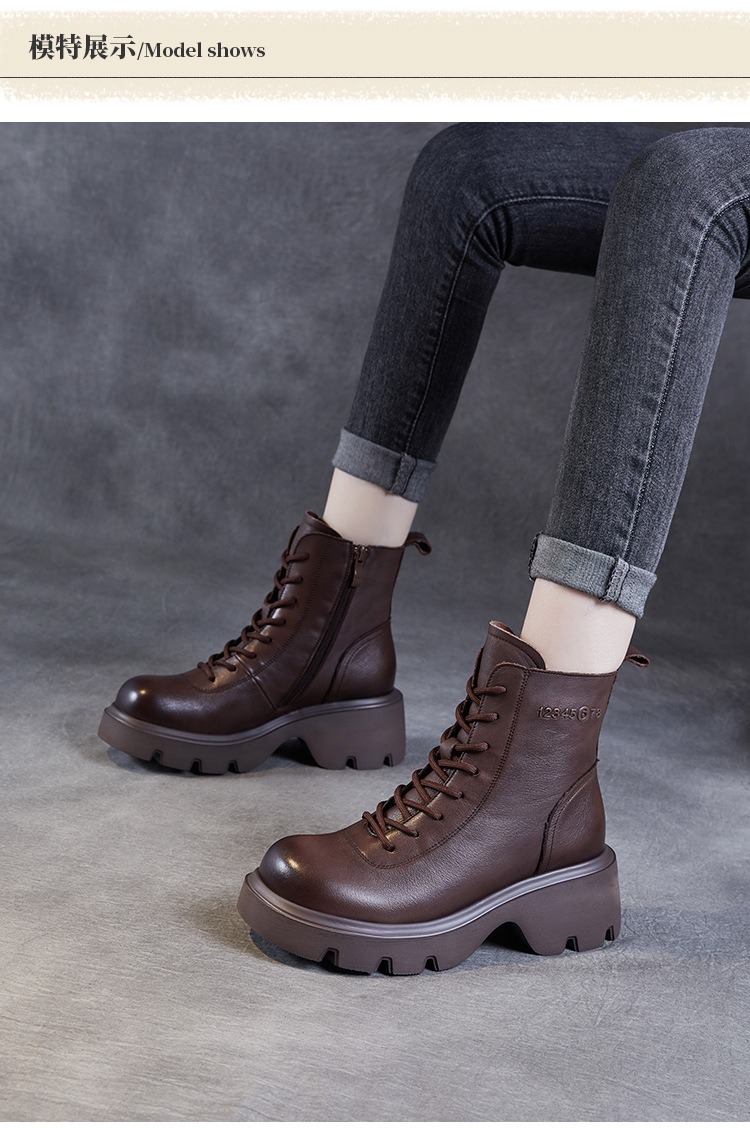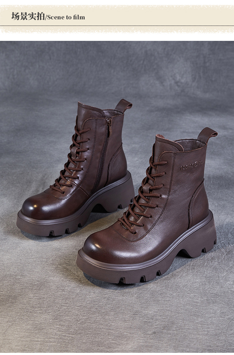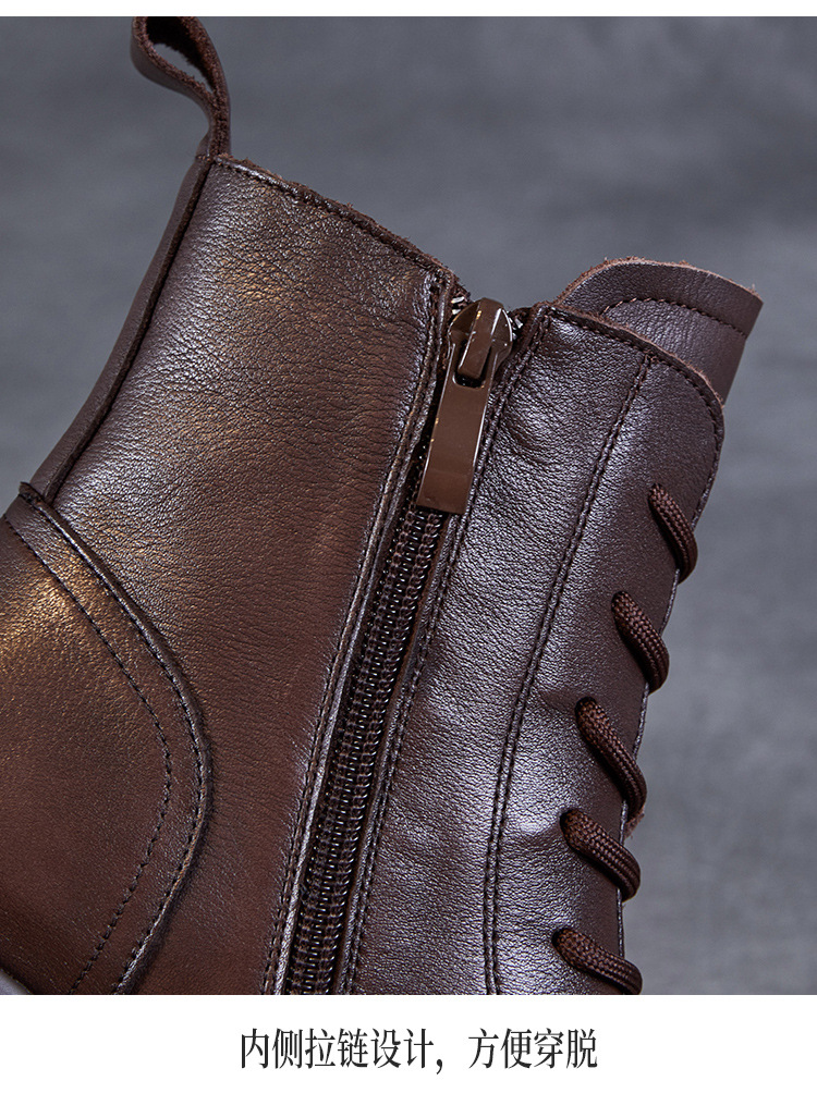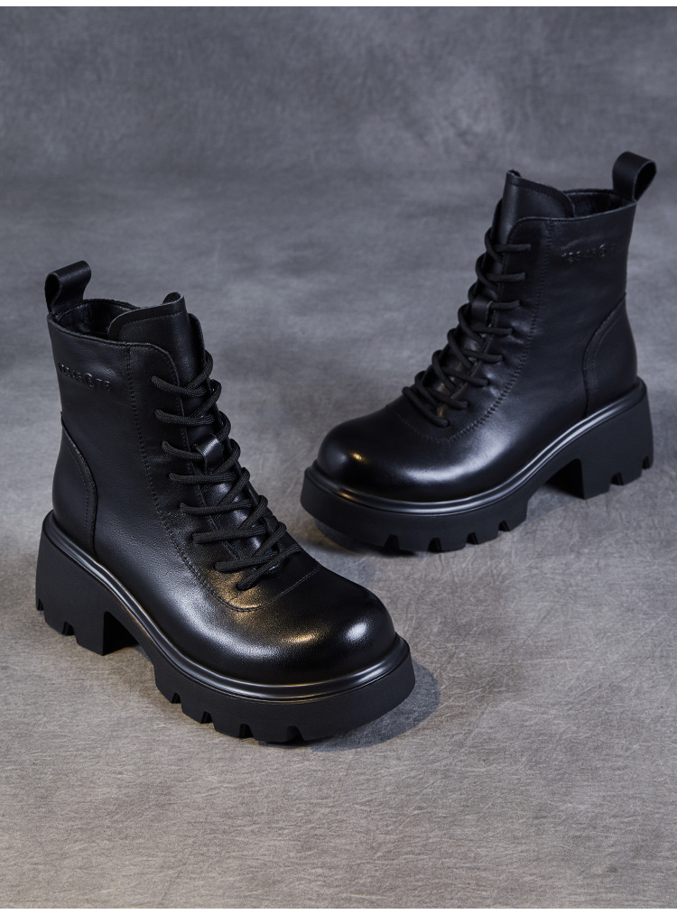 탑 레이어 소 가죽 두꺼운 밑창 마틴 부츠 여성의 2024 가을 및 겨울 새로운 빈티지 강화 짧은 튜브 기모 레이스 업 짧은 부츠 여성 신발스토어 가기