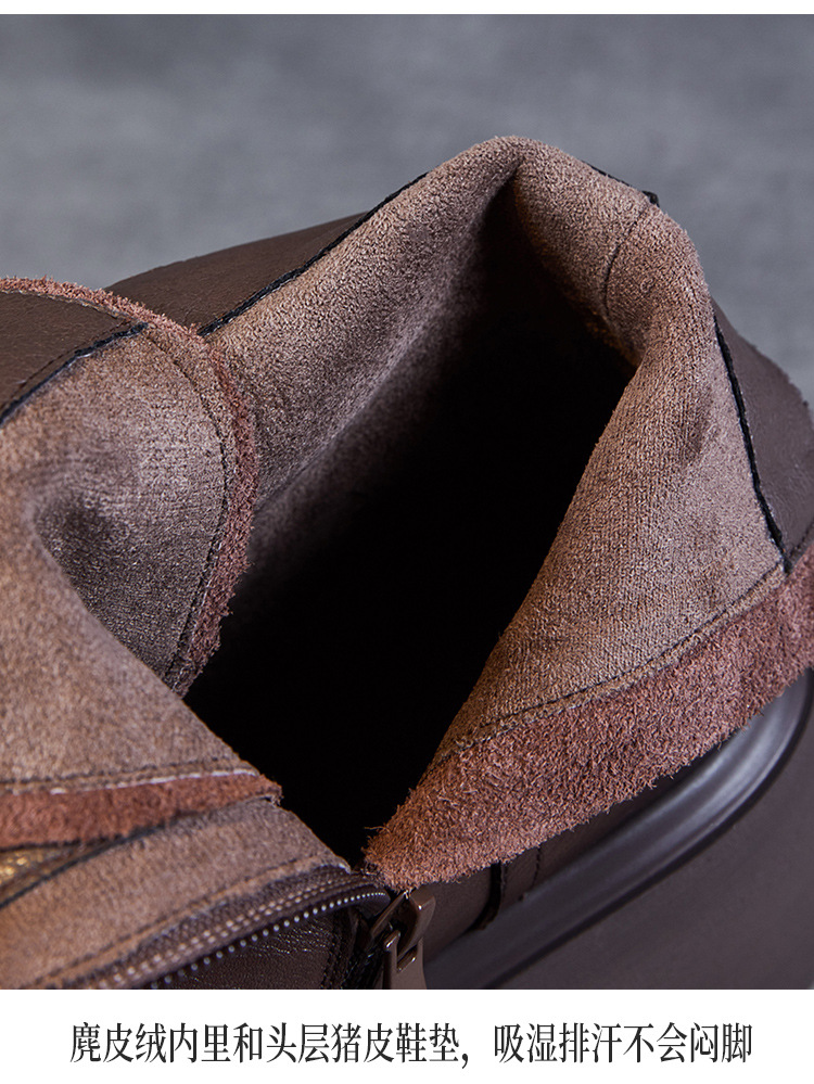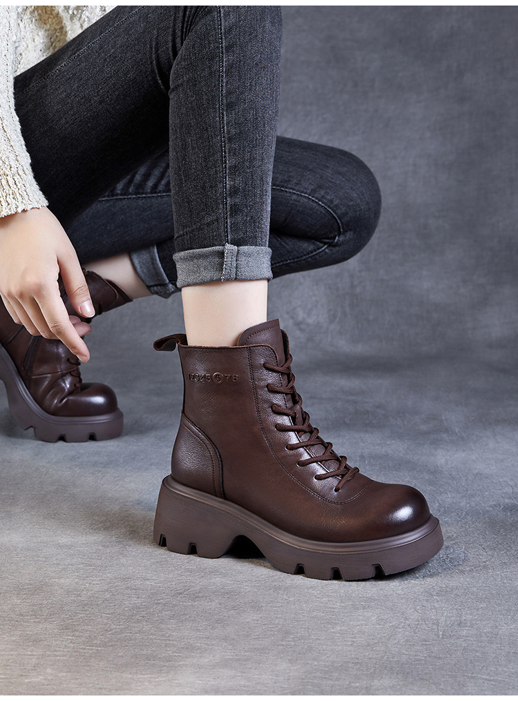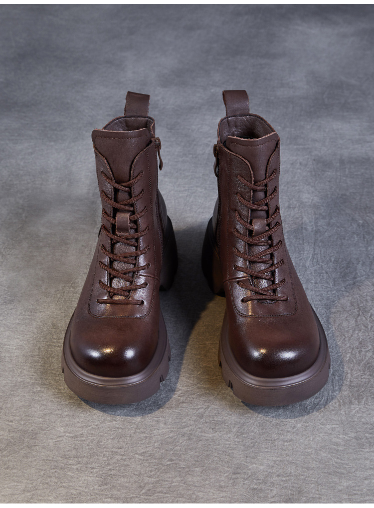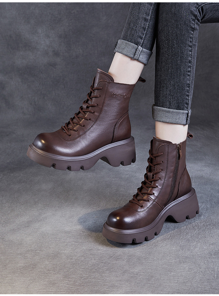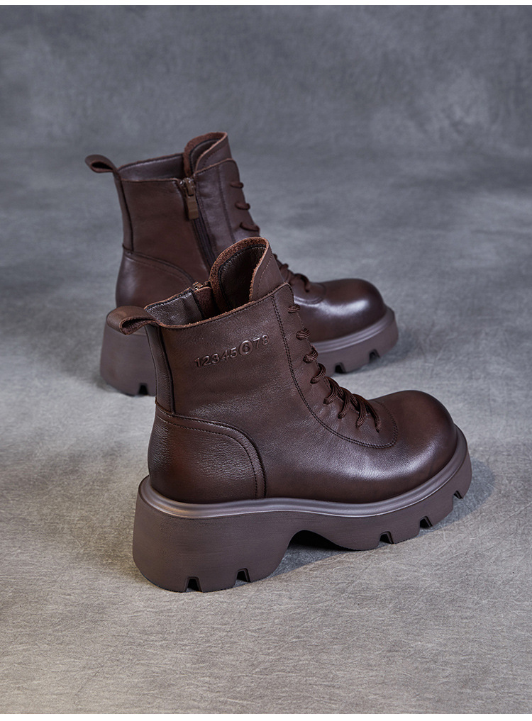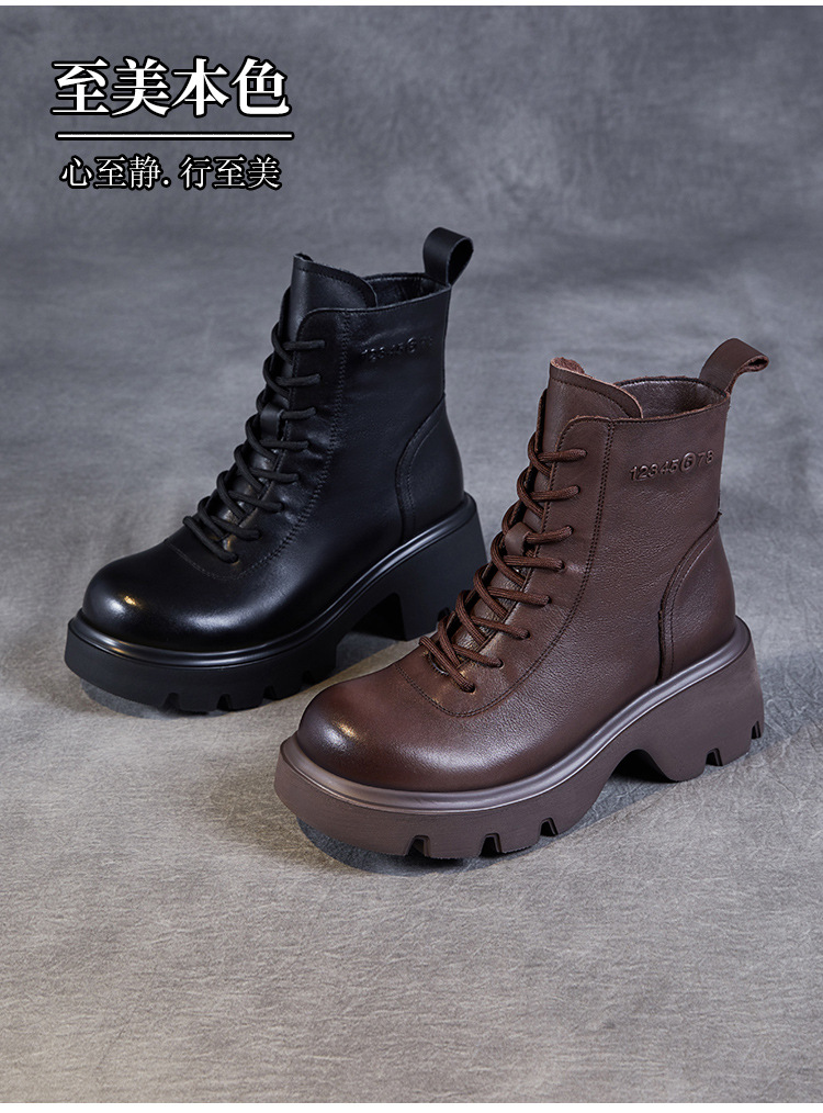 탑 레이어 소 가죽 두꺼운 밑창 마틴 부츠 여성의 2024 가을 및 겨울 새로운 빈티지 강화 짧은 튜브 기모 레이스 업 짧은 부츠 여성 신발스토어 가기