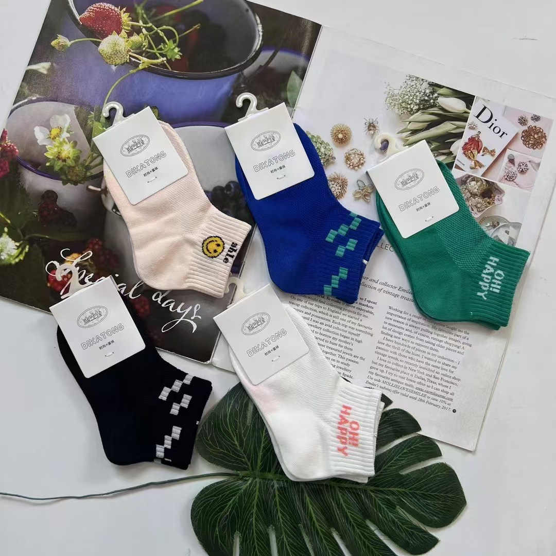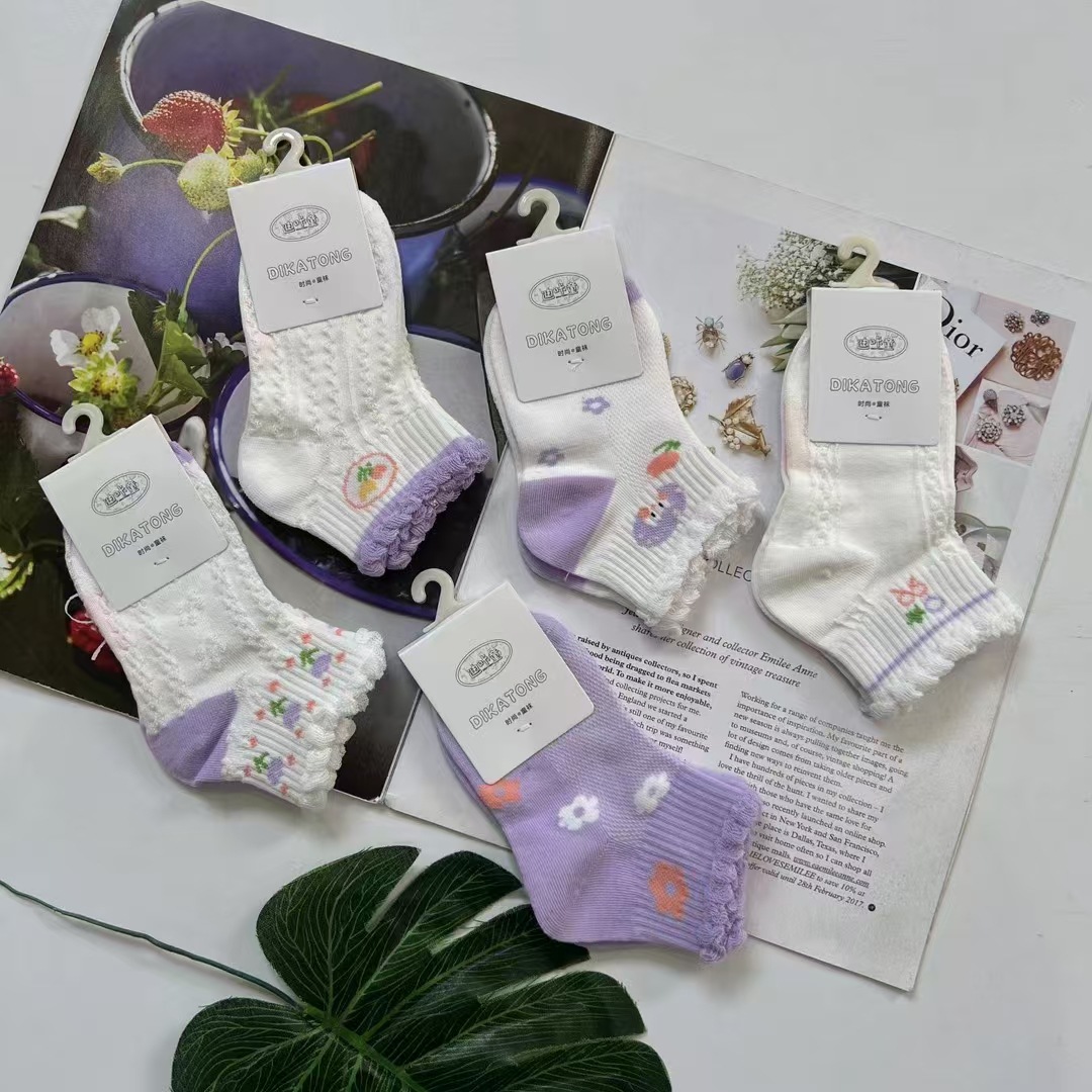 Kunao 어린이 양말 봄과 여름 얇은 면 통기성 귀여운 새 스타일 짧은 양말 아기 소년과 소녀 여름 메쉬 짧은 양말