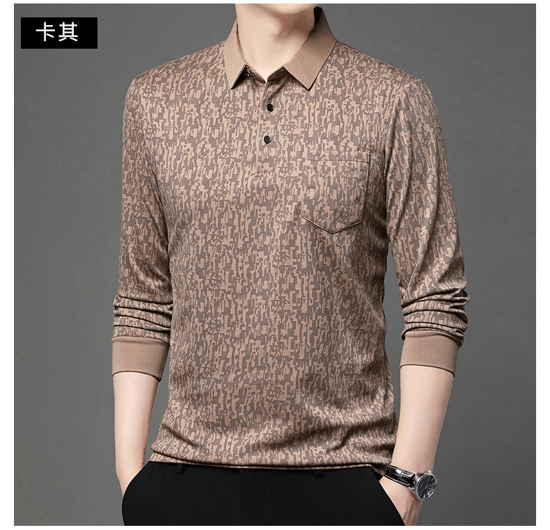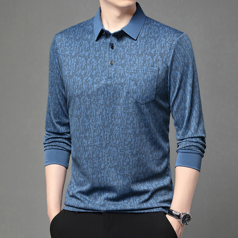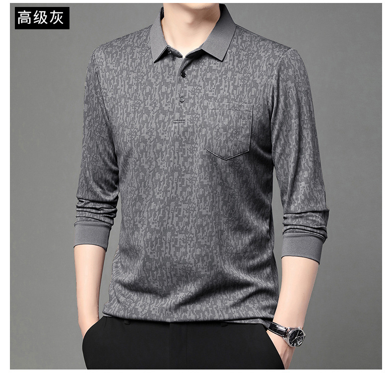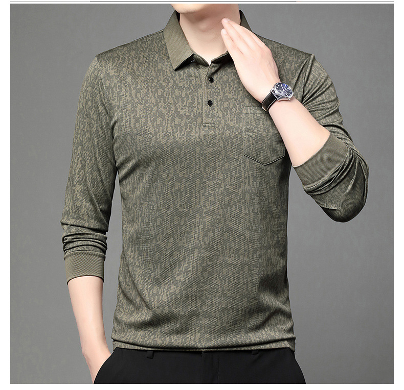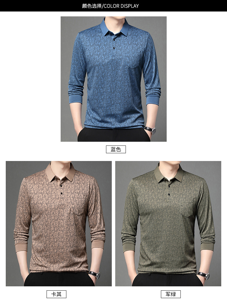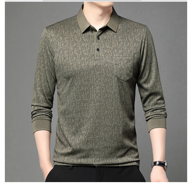 봄과 가을 긴 소매 티셔츠 남성 중년 및 청소년 옷깃 비즈니스 캐주얼 위장 폴로 셔츠, 가슴 아빠의 탑에 포켓