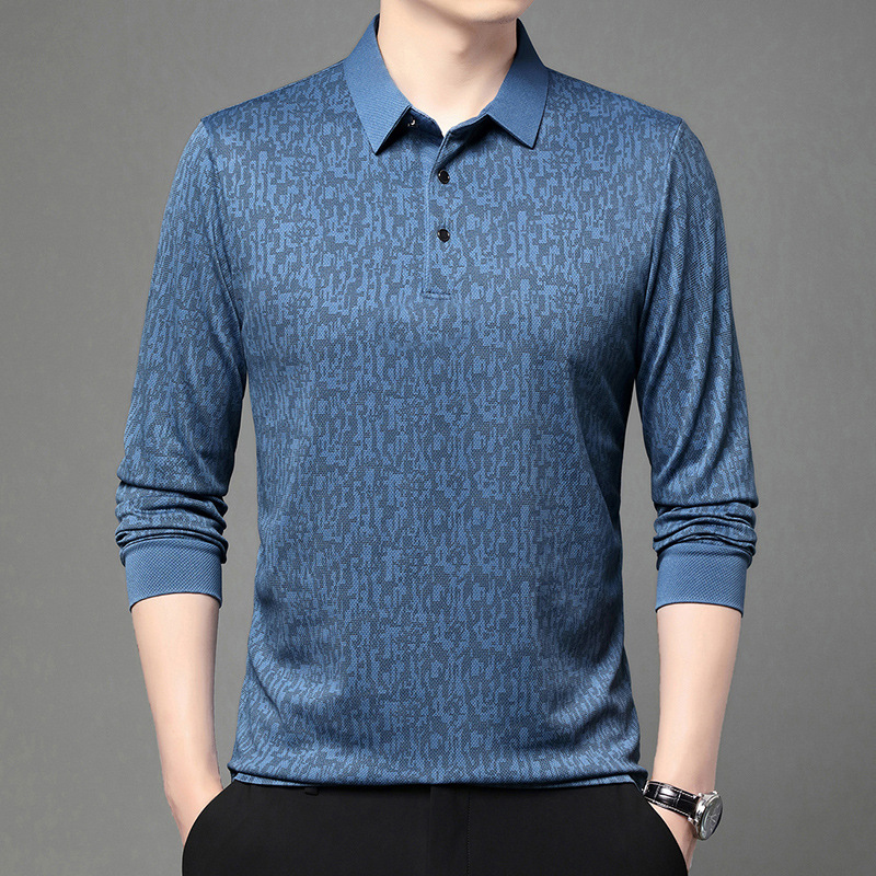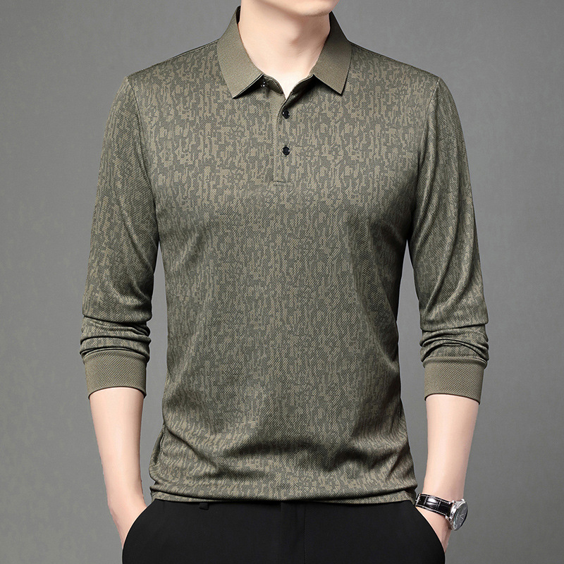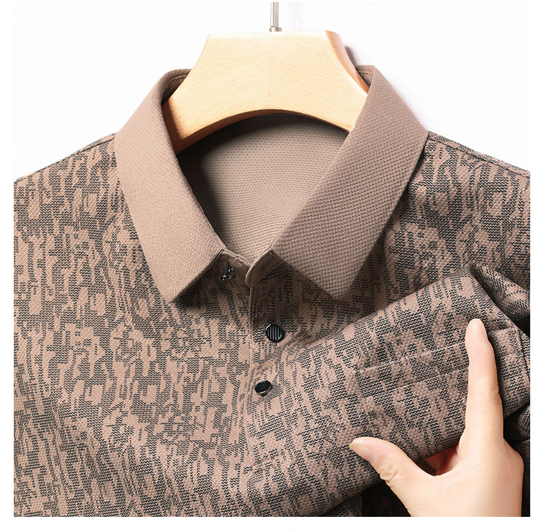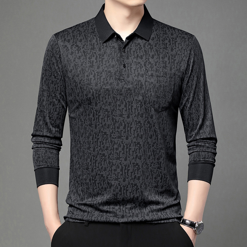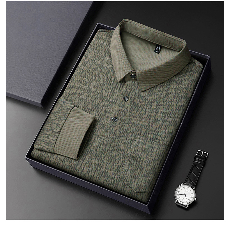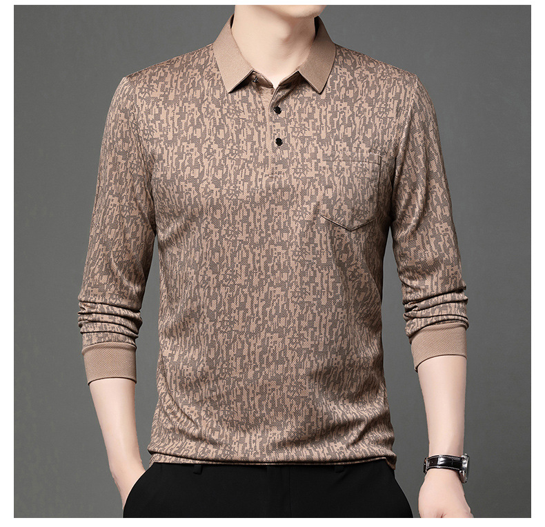 봄과 가을 긴 소매 티셔츠 남성 중년 및 청소년 옷깃 비즈니스 캐주얼 위장 폴로 셔츠, 가슴 아빠의 탑에 포켓