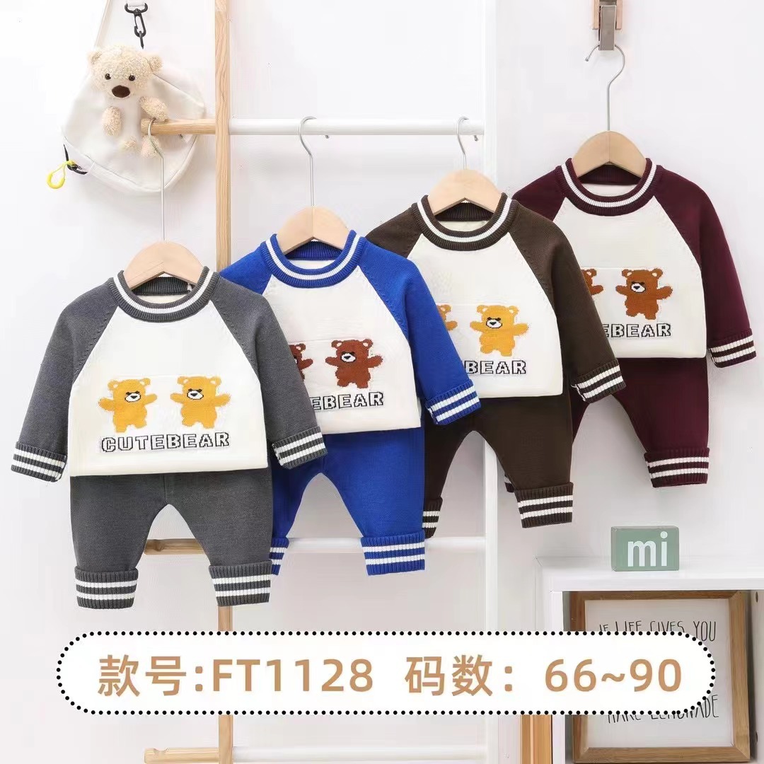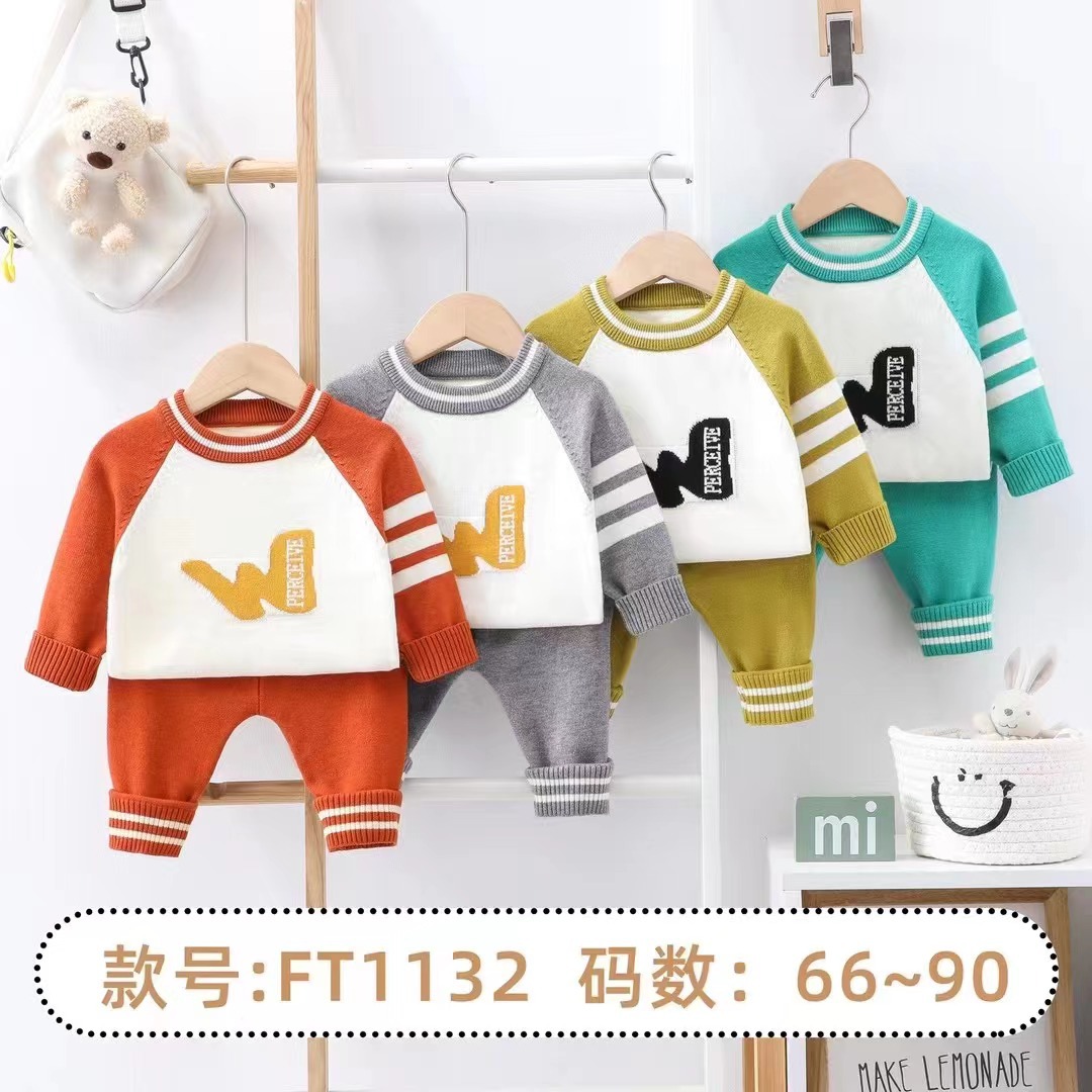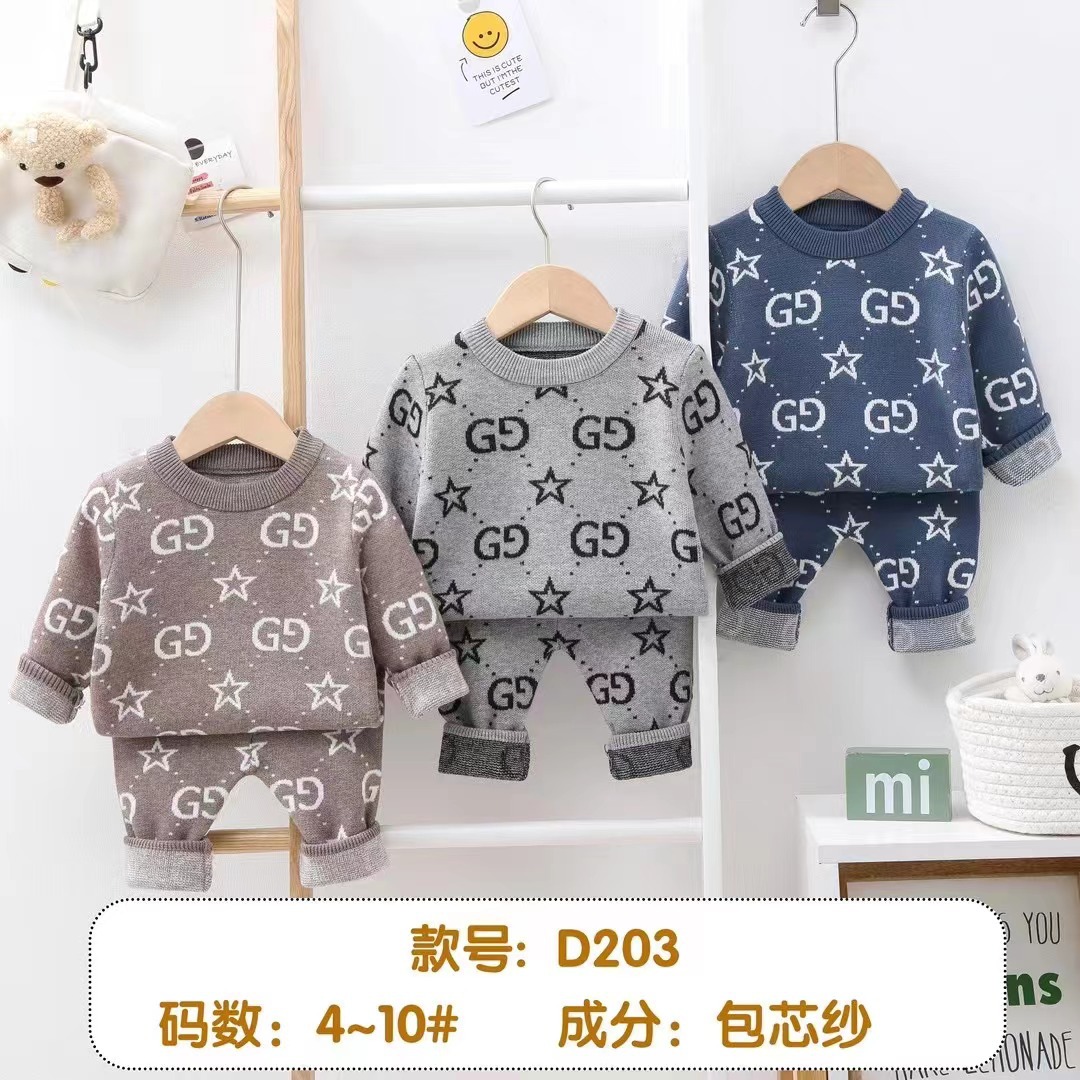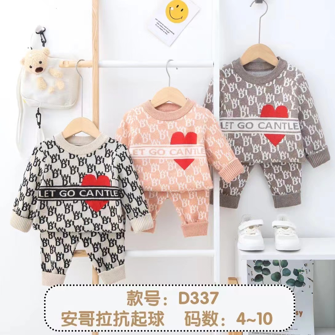 어린이 가을과 겨울 새로운 남녀 어린이 세트 느슨한 트렌드 올 매치 패션 라운드 넥 풀오버 레터 스웨터 세트스토어 가기