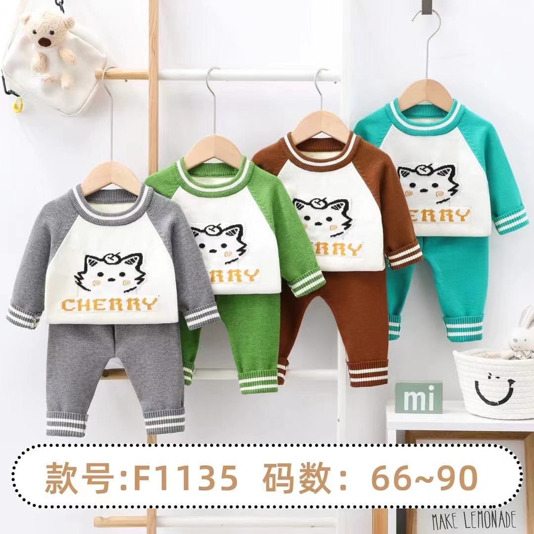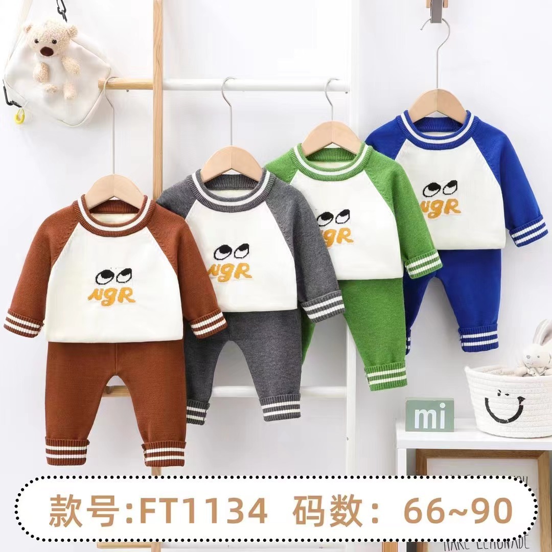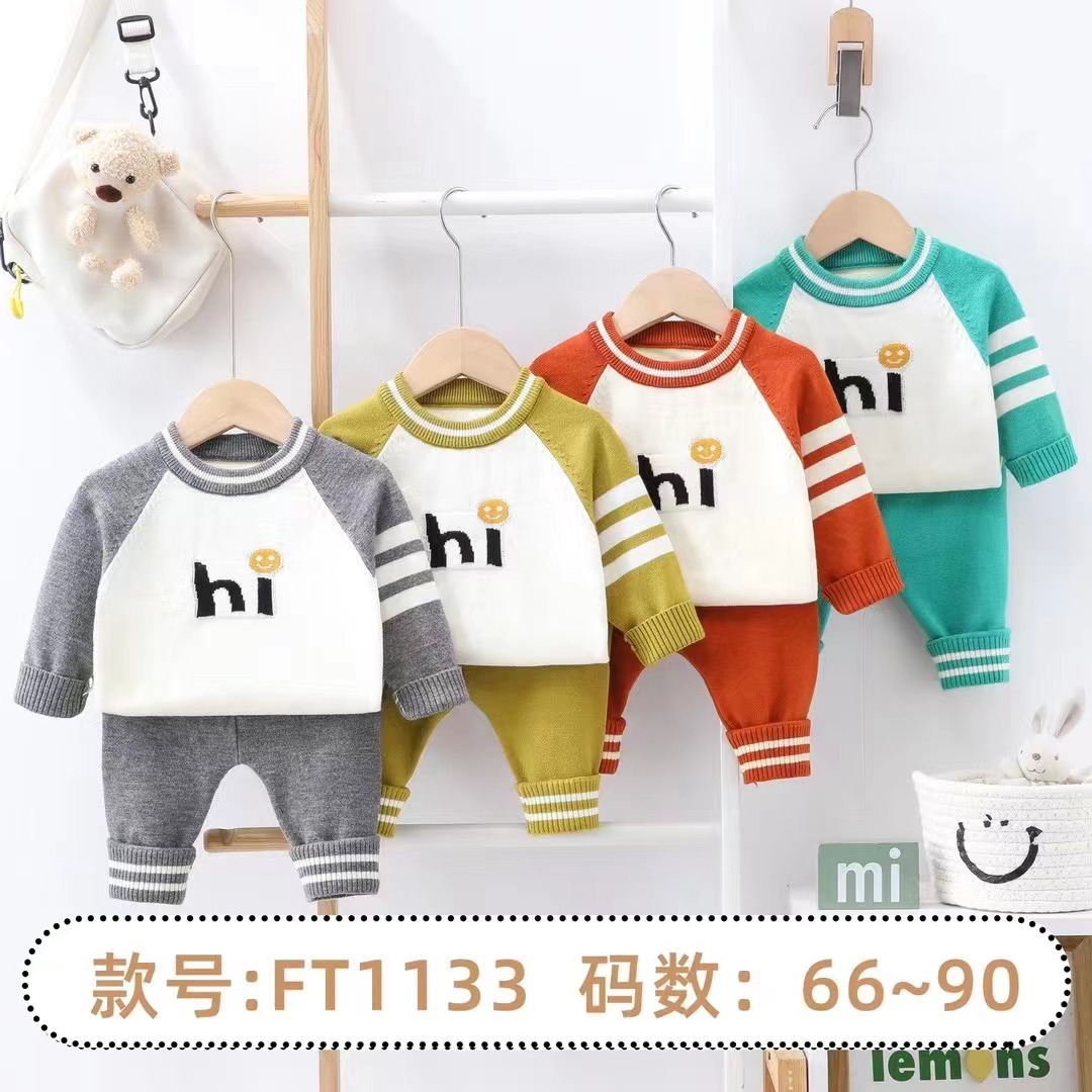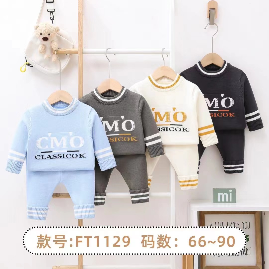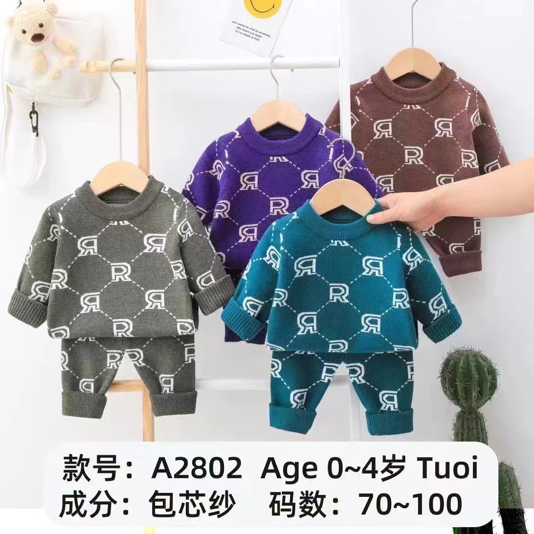 어린이 가을과 겨울 새로운 남녀 어린이 세트 느슨한 트렌드 올 매치 패션 라운드 넥 풀오버 레터 스웨터 세트