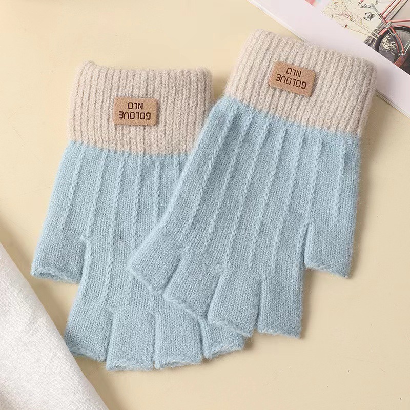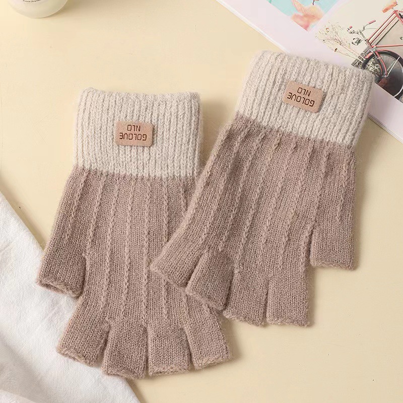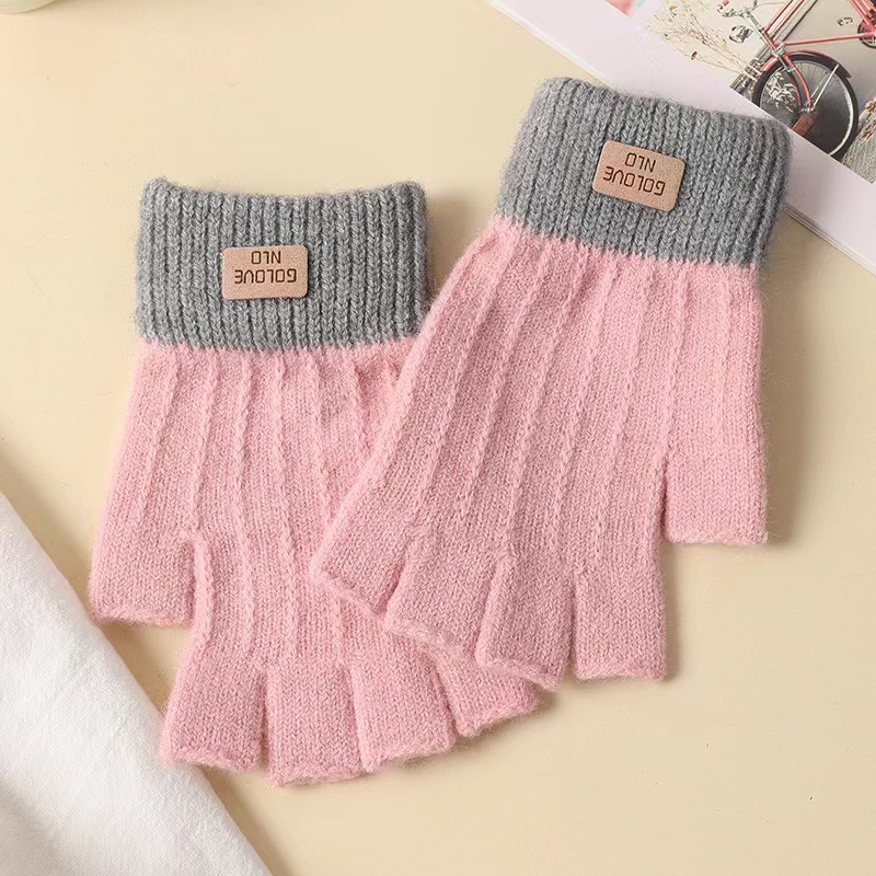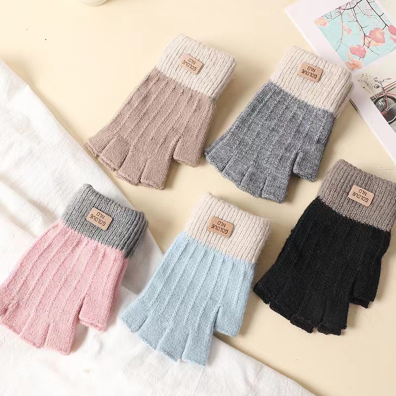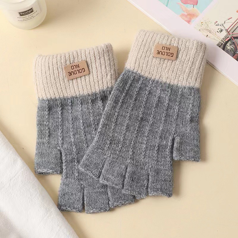 하프 컷 장갑 여성 하프 핑거 가을과 겨울 새로운 두꺼운 따뜻한 울 니트 라이딩 및 쓰기 귀여운 손가락 누락 장갑