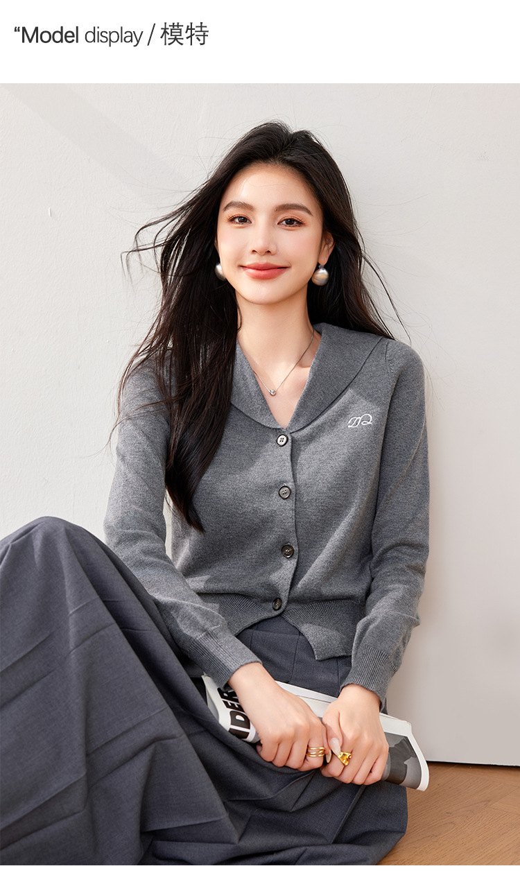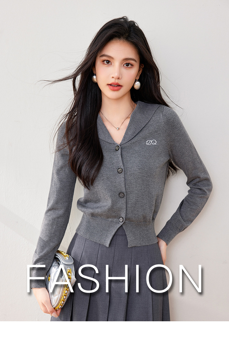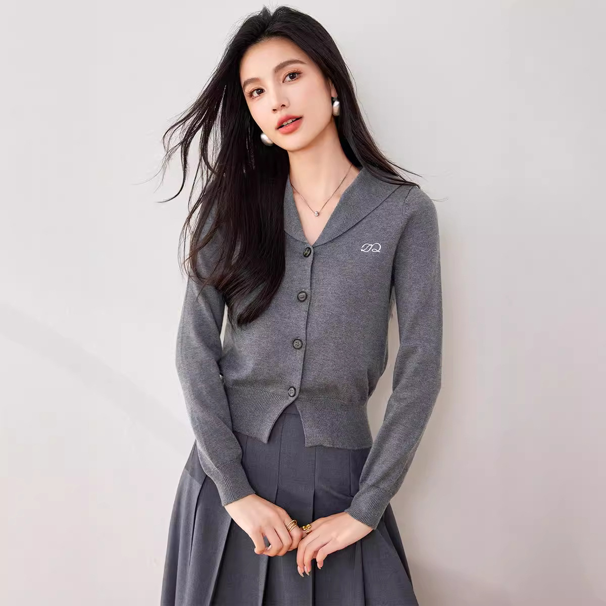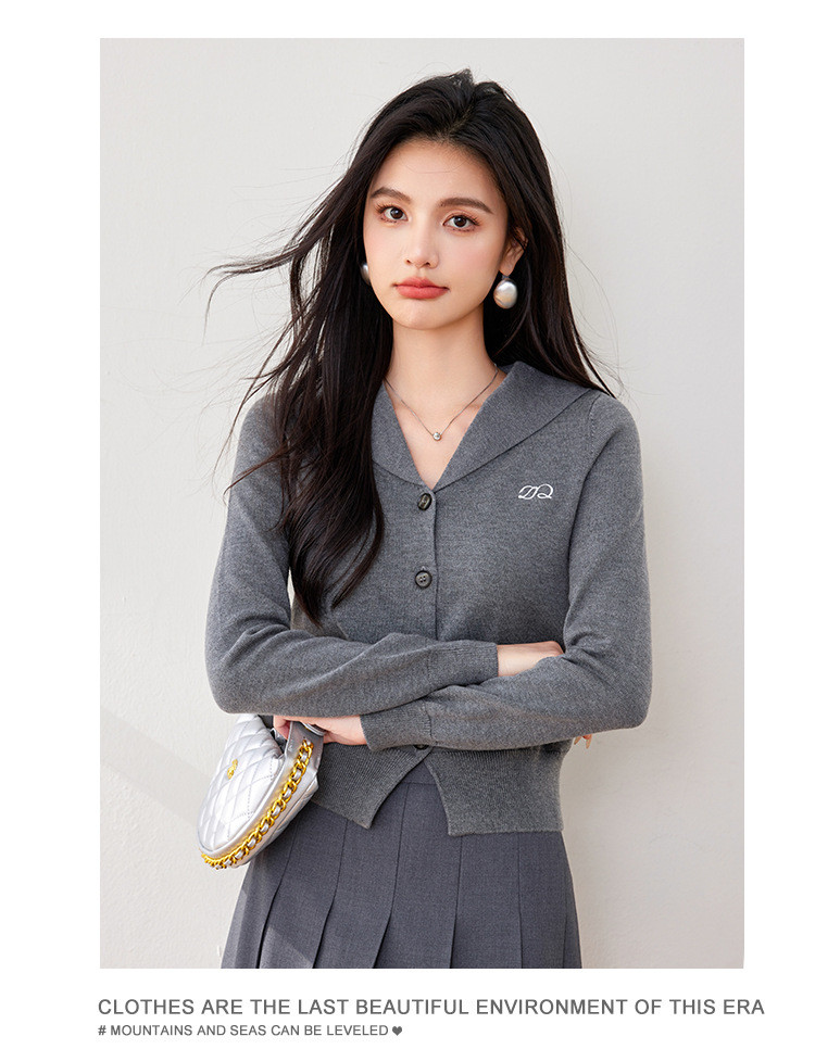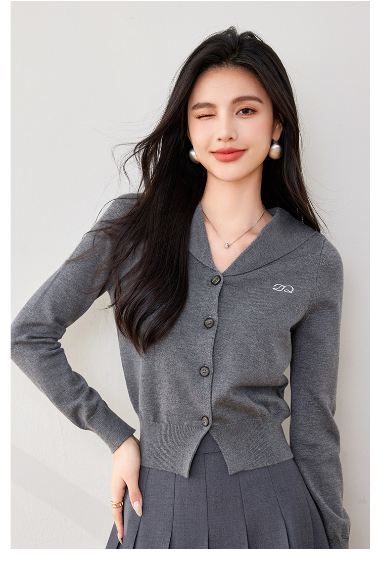2024 년 가을과 겨울 새로운 한국 스타일 작은 남성 기계 여성용 세탁기 그레이 슬림 핏 짧은 카디건 해군 칼라 니트 스웨터
