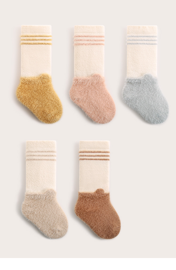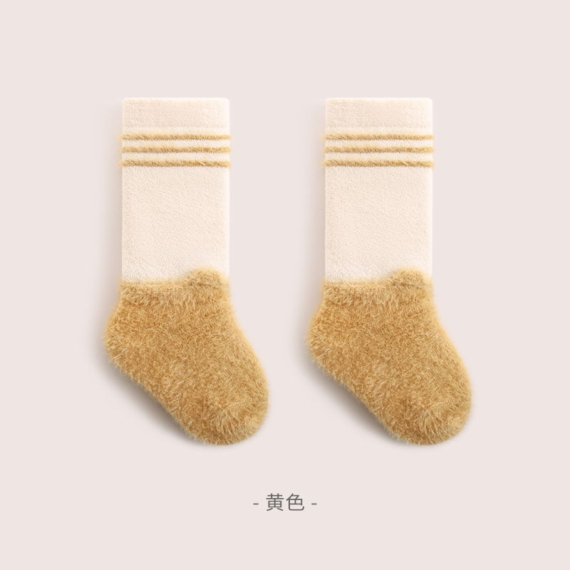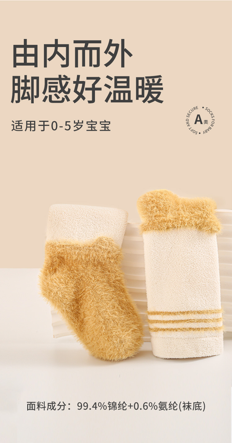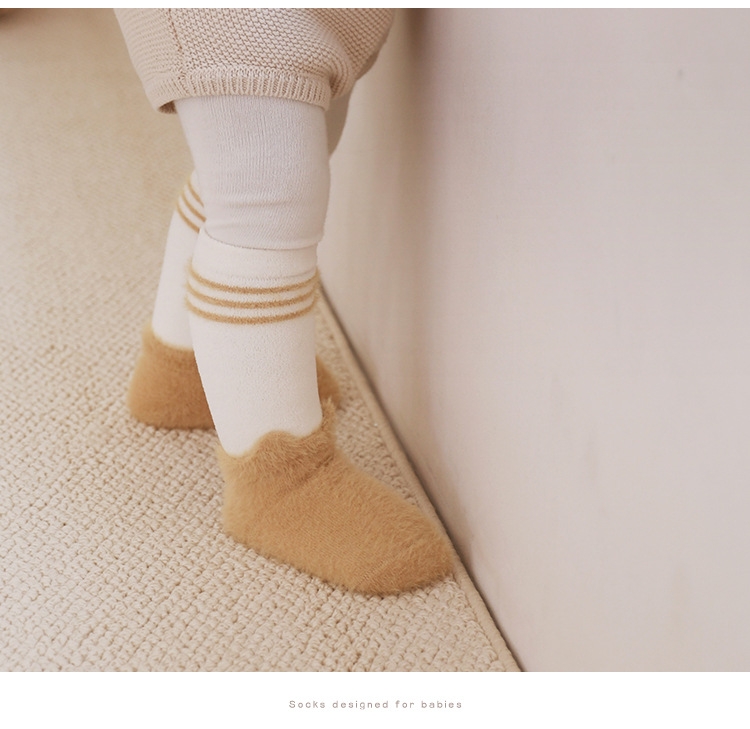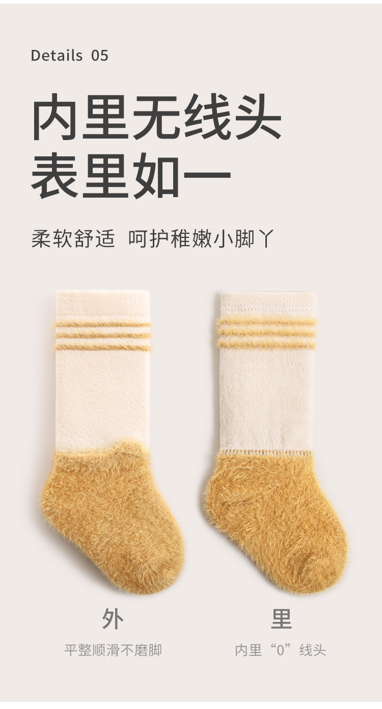 아기 양말 겨울 두꺼운 따뜻한 아기 산호 벨벳 양말 소년과 소녀 귀여운 뼈없는 느슨한 봉제 튜브 양말