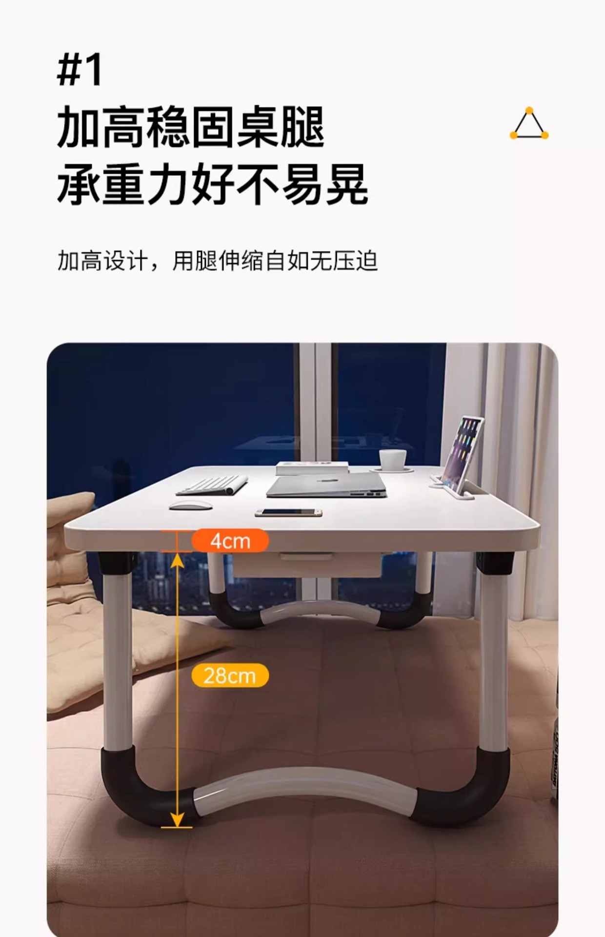 • 40*60 정사각형 흰색 + 컵 홀더 + 서랍 + 검정색 미끄럼 방지 다리