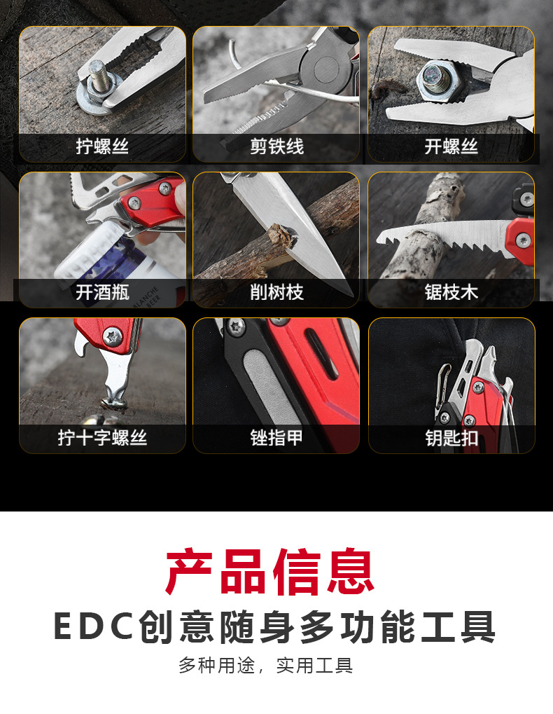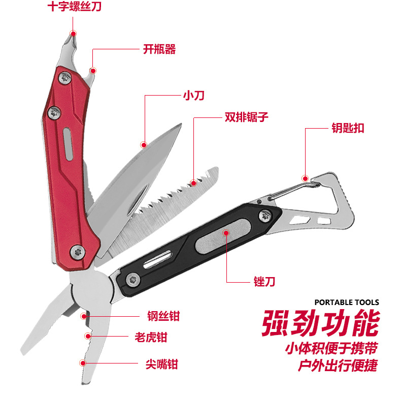 평범한 EDC 도구, 야외 캠핑용 미니 다기능 플라이어, 서바이벌 키링, 등산용 클립, 휴대용 이중 톱, 드라이버