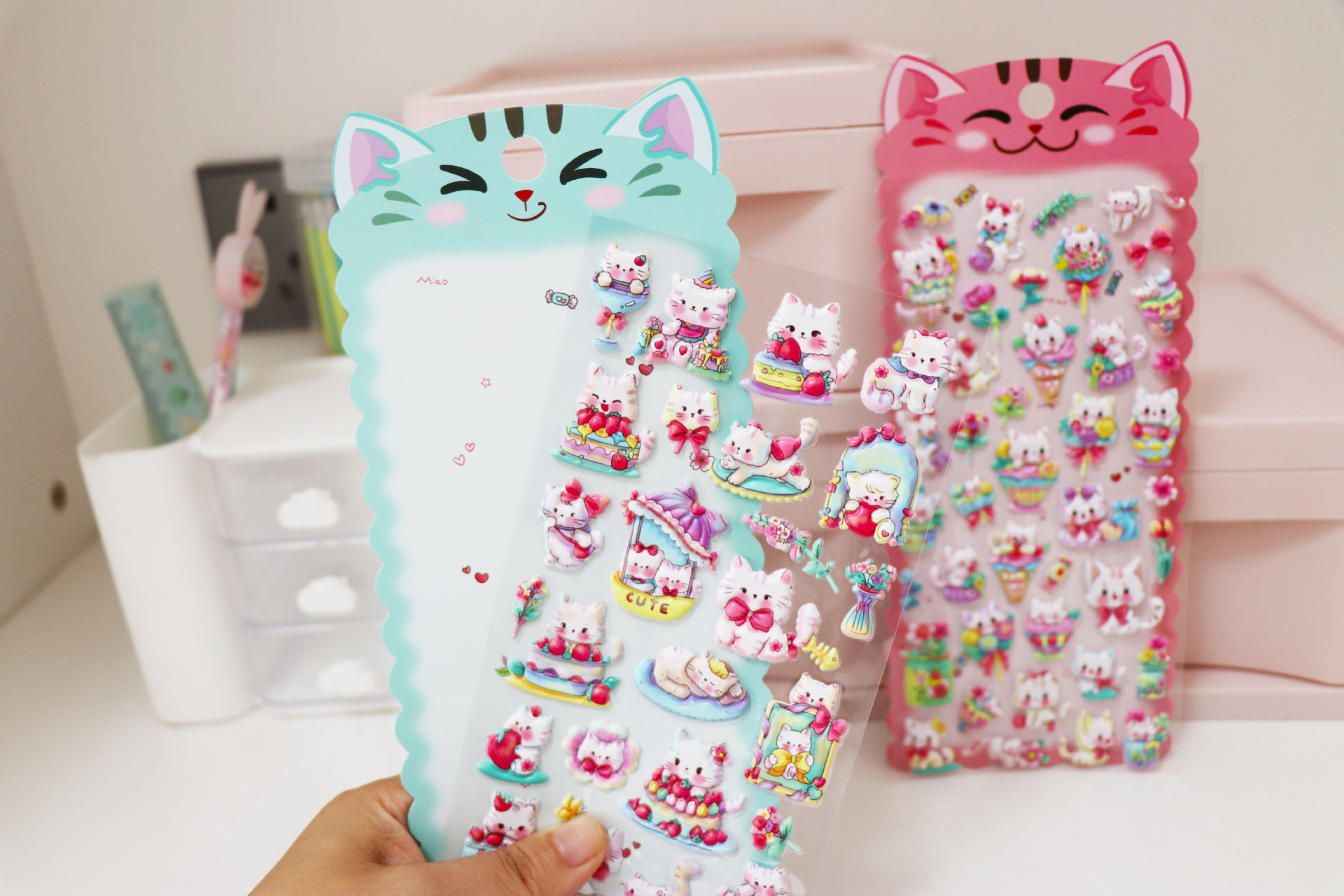 새로운 어린이 스티커 귀여운 새끼 고양이 스티커 만화 동물 거품 스테레오 스티커 조기 교육 아기 스티커 도매스토어 가기