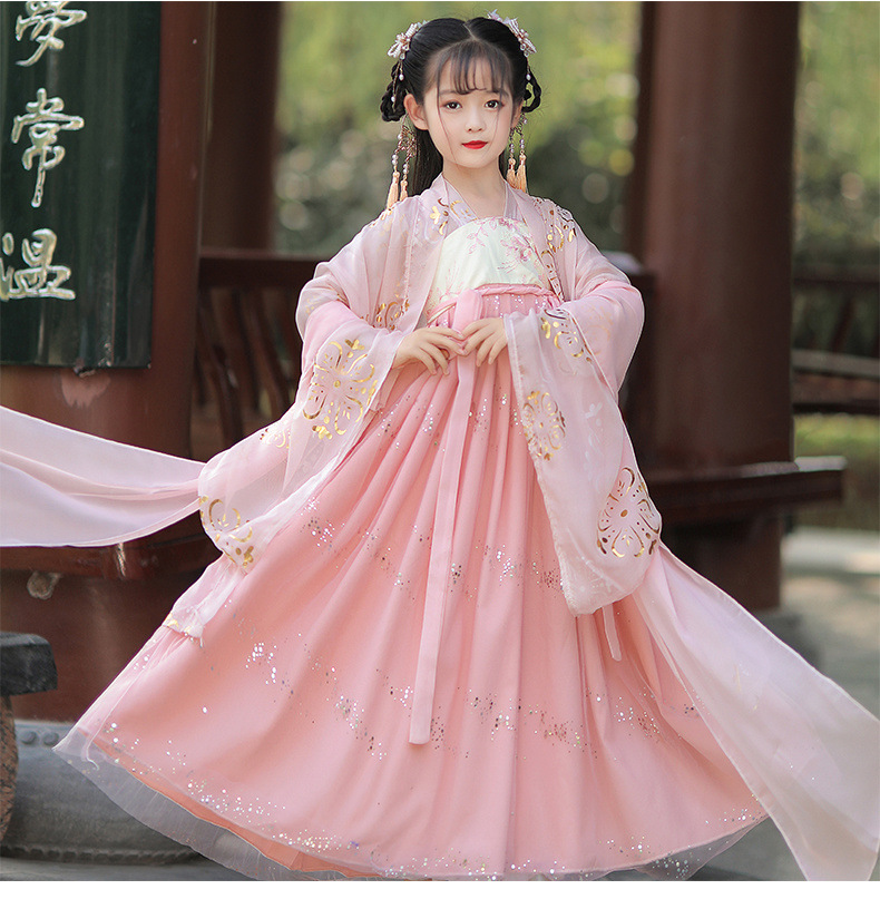 한푸 소녀 봄과 가을 어린이 고대 의상 2024 새로운 슈퍼 요정 탕 세트 고대 스타일 소녀 봄 공주 원피스