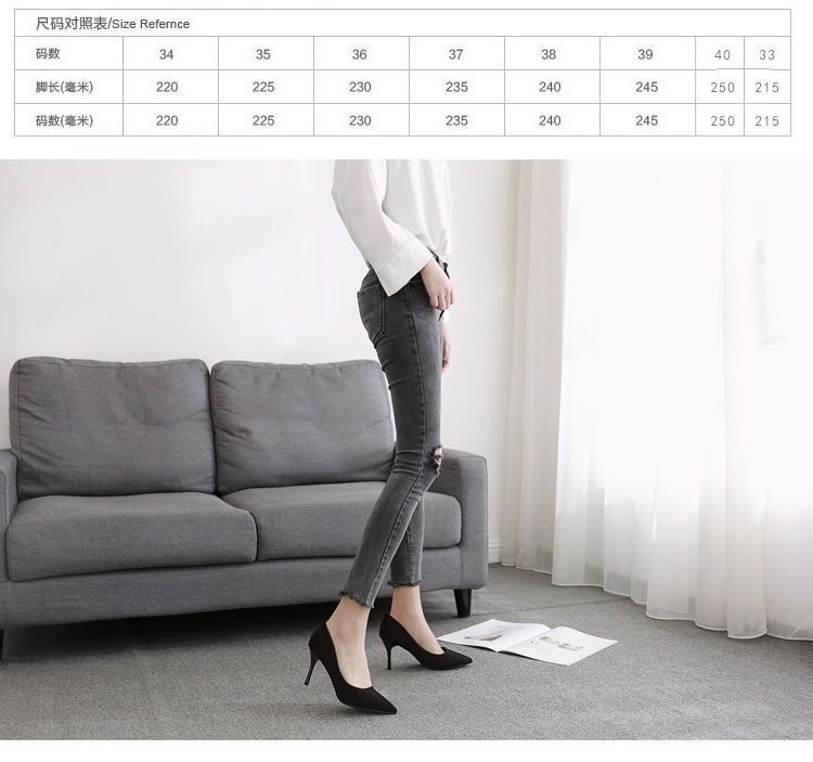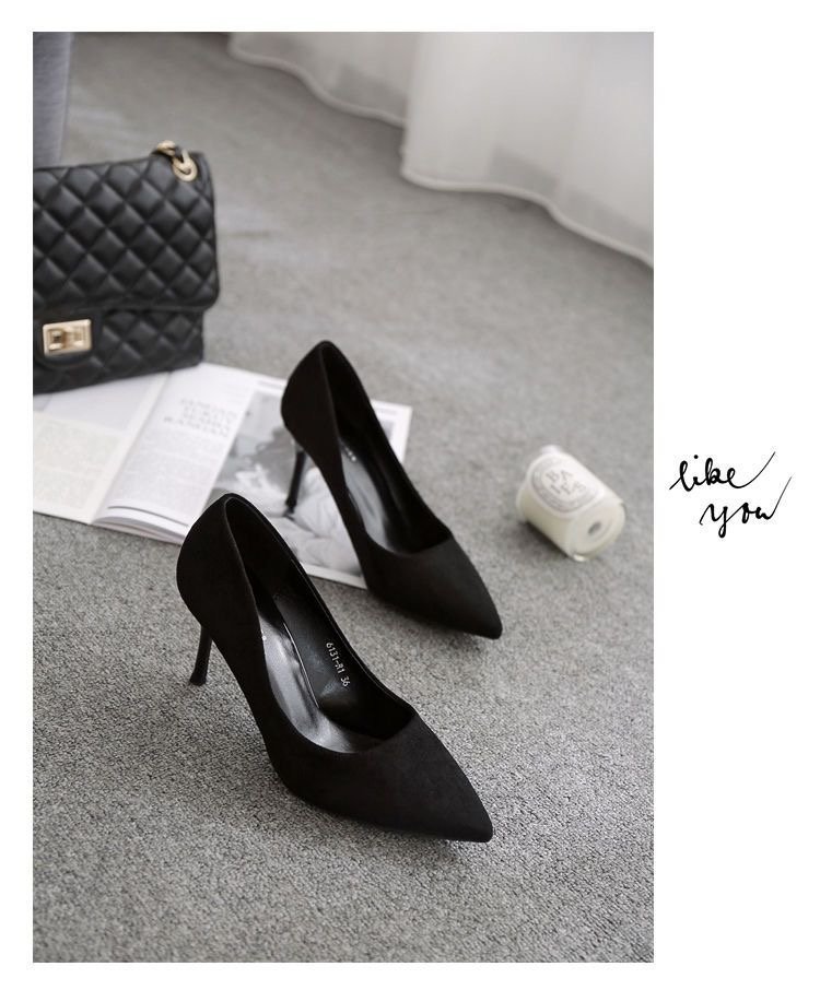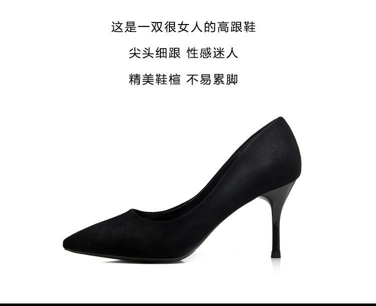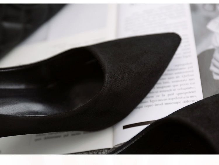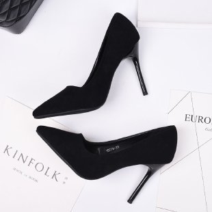 얕은 입 스웨이드 하이힐 여성 2024 봄과 가을 새로운 블랙 스틸레토 포인팅 전문 신발 대외 무역 플러스 사이즈 의식 신발스토어 가기