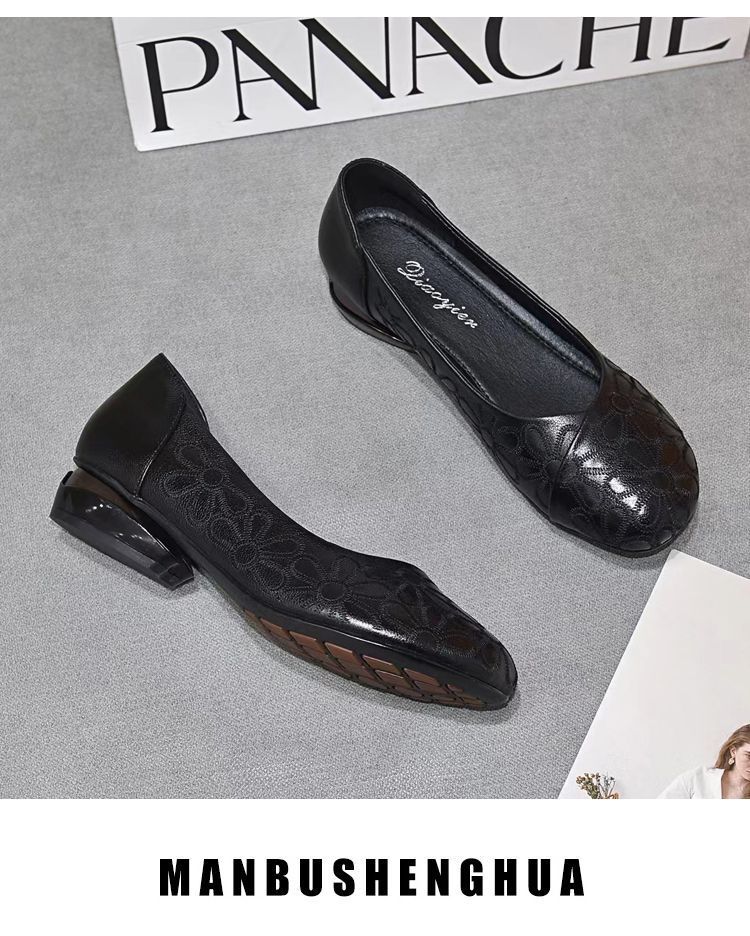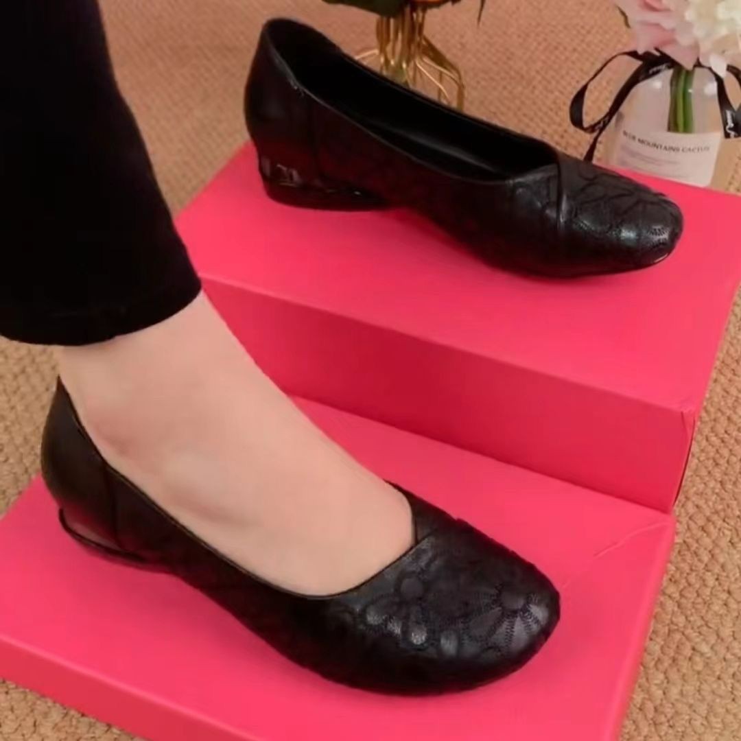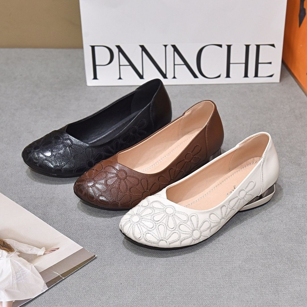 2024 빈티지 가죽 신발 낮은 입 신발 엄마 신발 낮은 발 뒤꿈치 슬립-부드러운 가죽 소프트 단독 중년 및 노인 신발 신발 신발 신발 신발 신발
