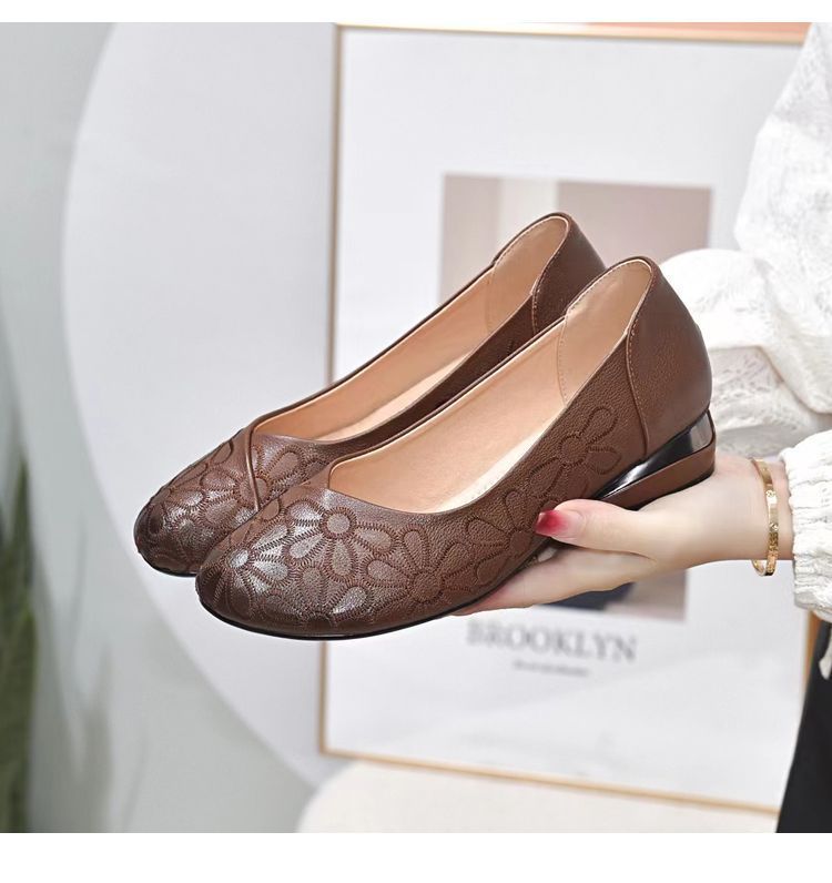 2024 빈티지 가죽 신발 낮은 입 신발 엄마 신발 낮은 발 뒤꿈치 슬립-부드러운 가죽 소프트 단독 중년 및 노인 신발 신발 신발 신발 신발 신발스토어 가기
