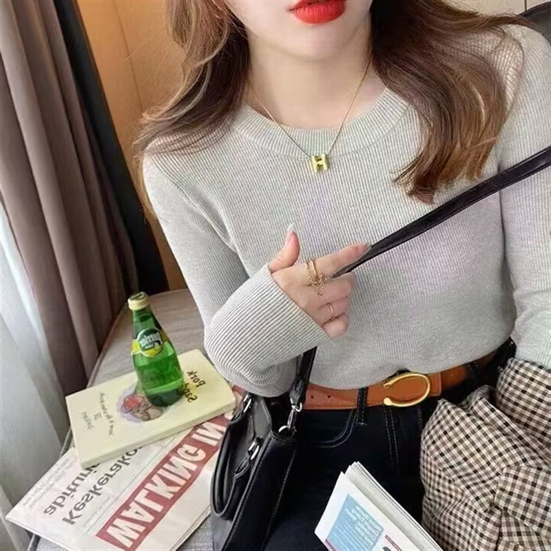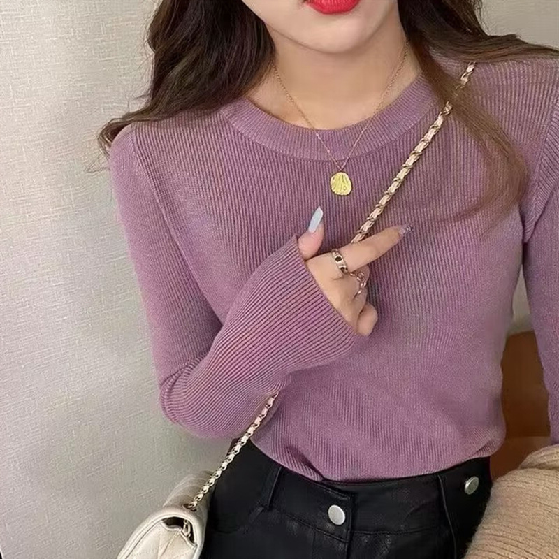 베이스 셔츠 여성의 가을과 겨울 하이 엔드 2023 새로운 한국 스타일 니트 셔츠 라운드 넥 슬림 핏 스웨터 내탑 여성 트렌디
