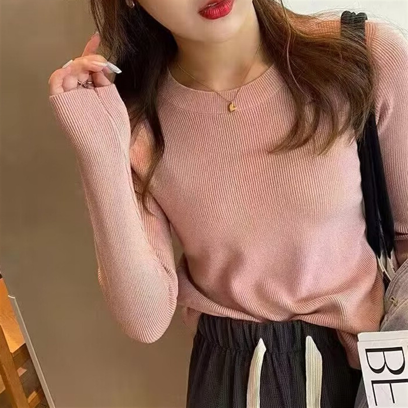 打底衫女秋冬高级感2023新款韩版针织衫圆领修身毛衣内搭上衣女潮
