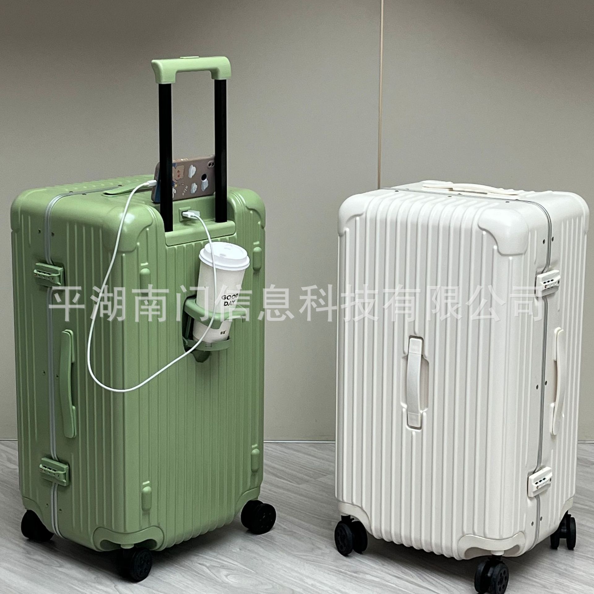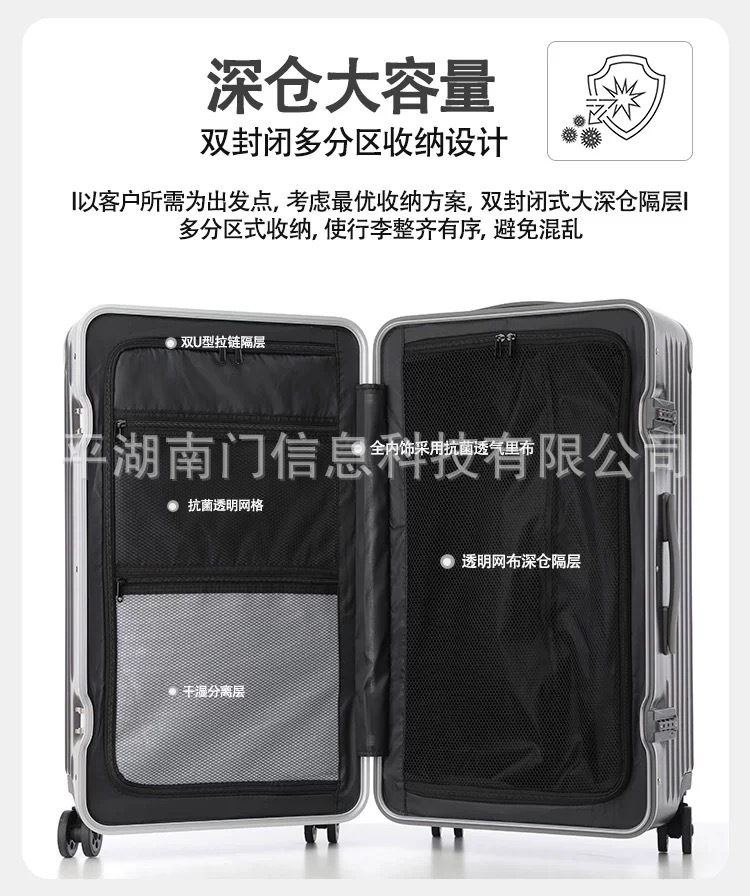 새로운 수출 알루미늄 프레임 충전 컵 홀더 수하물 여성 32 인치 유니버설 휠 트롤리 케이스 남성 28 인치 학생 가방스토어 가기