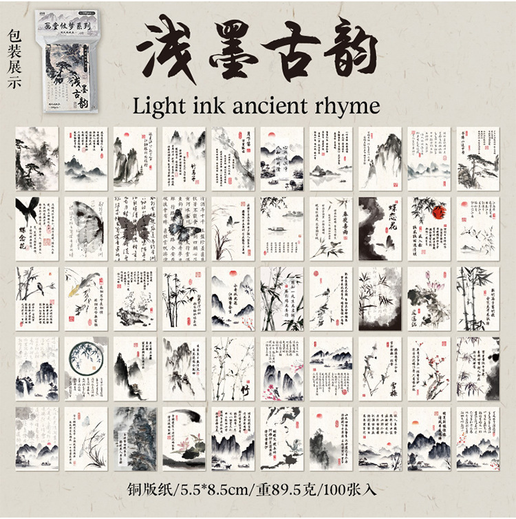 Yu Xian 스티커 책 회화 홀 Youmeng 시리즈 Guofeng 서예 텍스트 그림 손 계정 기본 벽 장식 콜라주스토어 가기