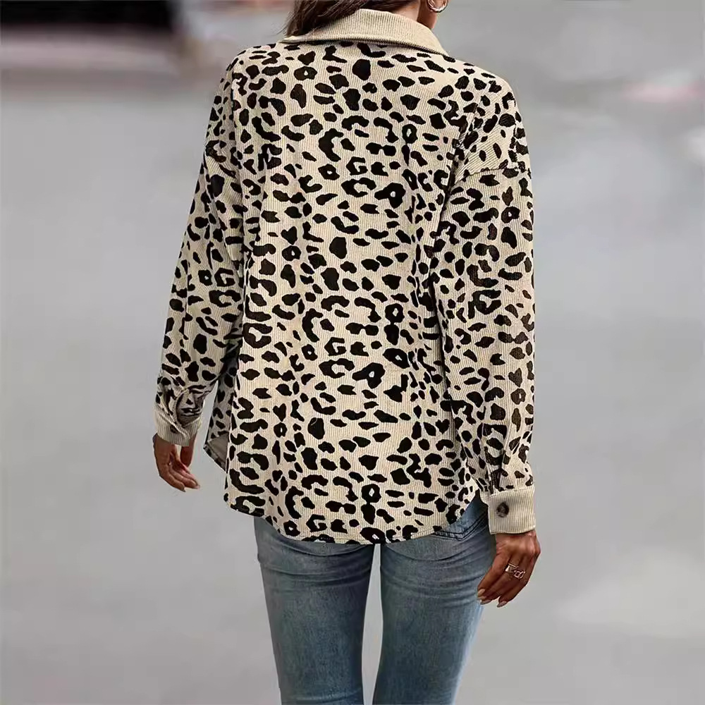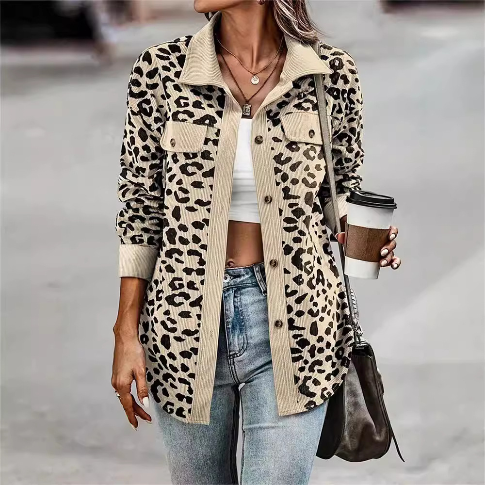 아마존 국경 유럽 및 미국 여성 패션 빈티지 부두 재킷 긴 소매 재킷 가을 레오파드 무늬 셔츠