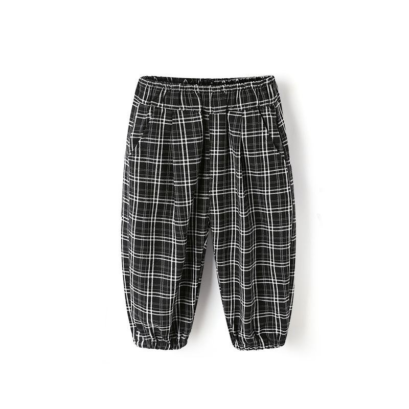 2024 가을 겨울 어린이 격자 무늬 발목 바지 한국 만화 팬더 느슨한 바지 따뜻한 바지 소년 캐주얼 바지