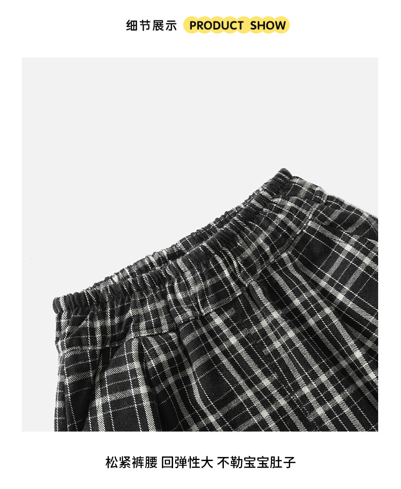 2024 가을 겨울 어린이 격자 무늬 발목 바지 한국 만화 팬더 느슨한 바지 따뜻한 바지 소년 캐주얼 바지스토어 가기