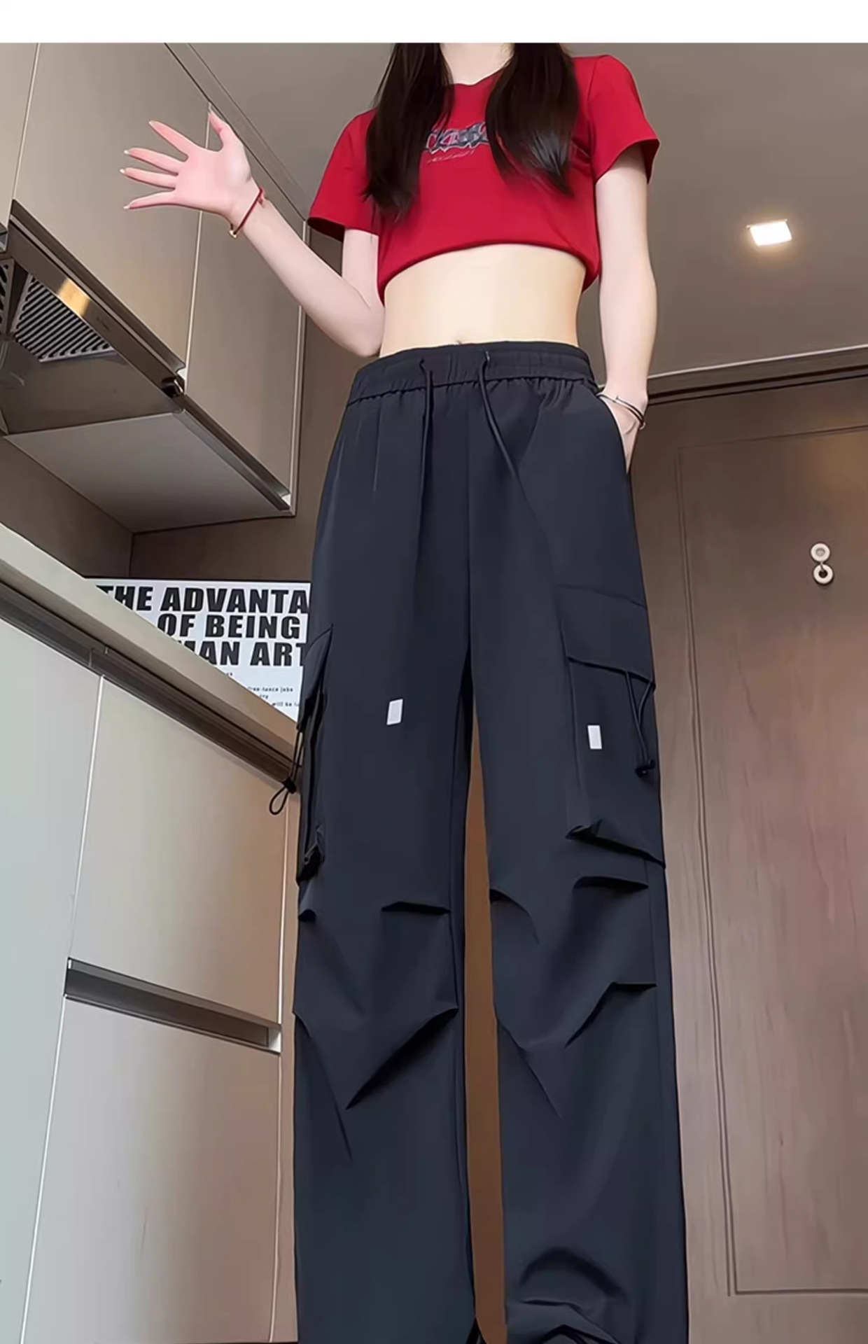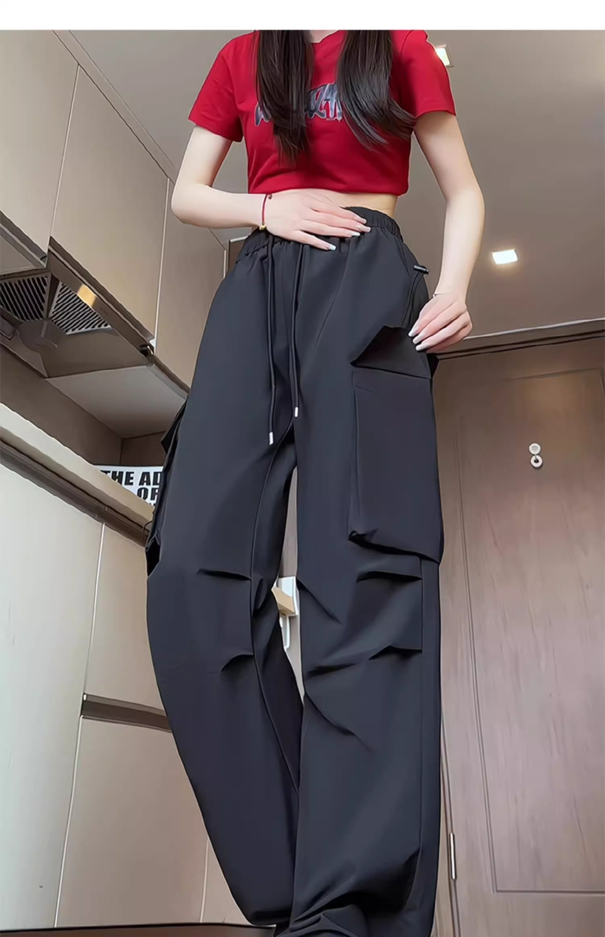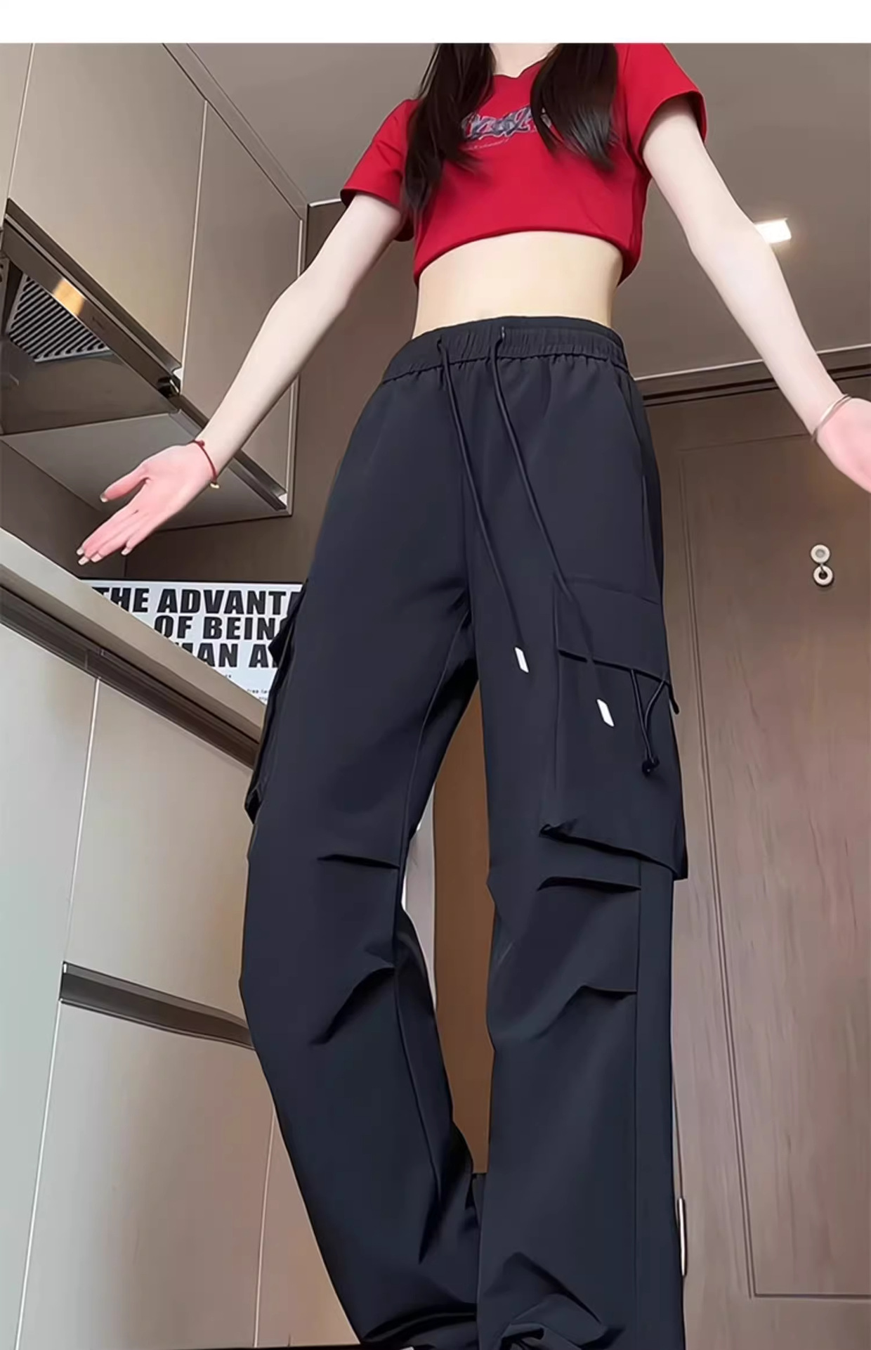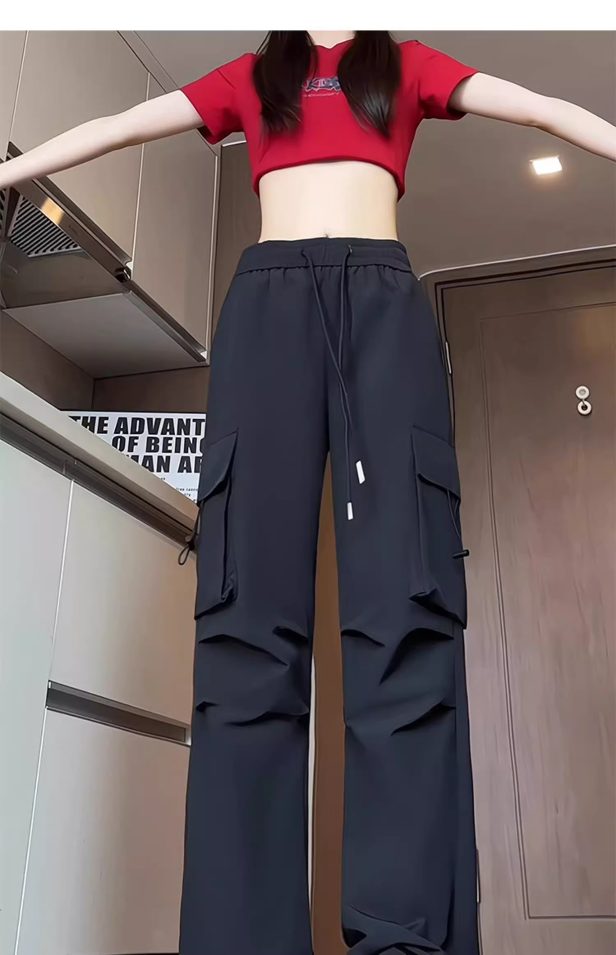 패션 트렌드 충전 바지 여성의 봄과 가을 2024 새로운 느슨한 스포츠 작업복 캐주얼 바지 산 긴 바지스토어 가기