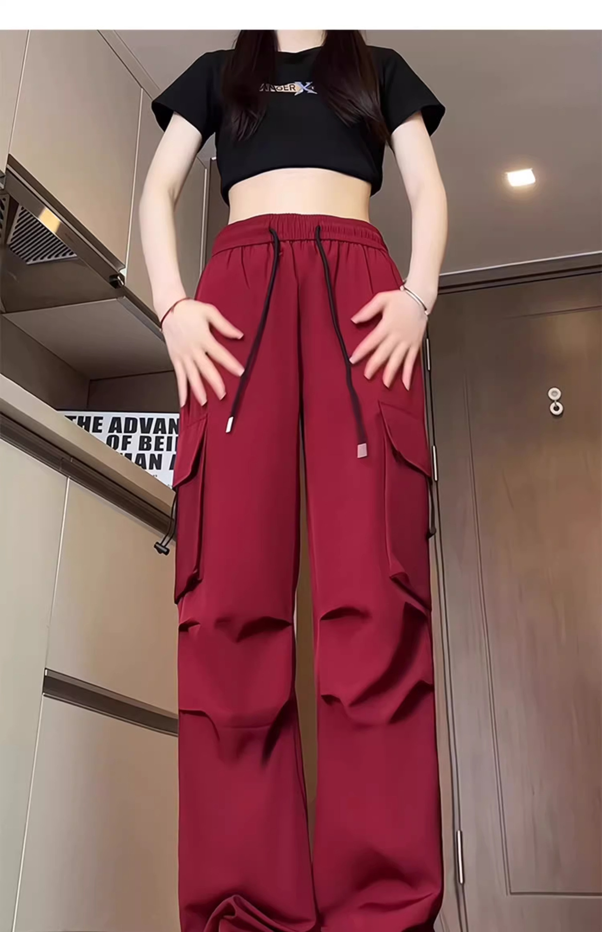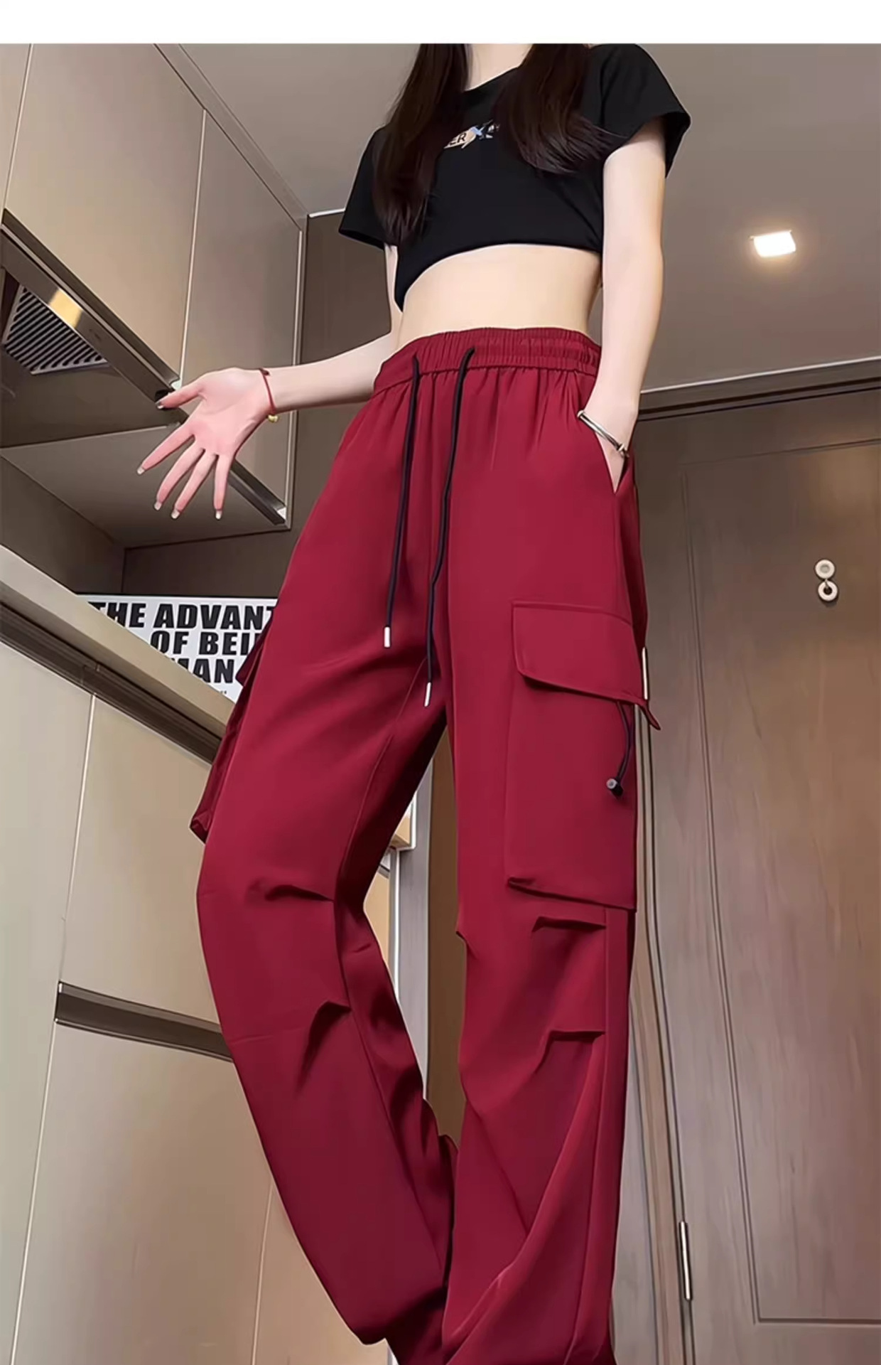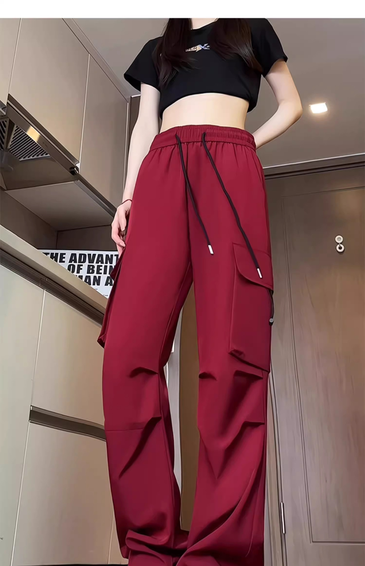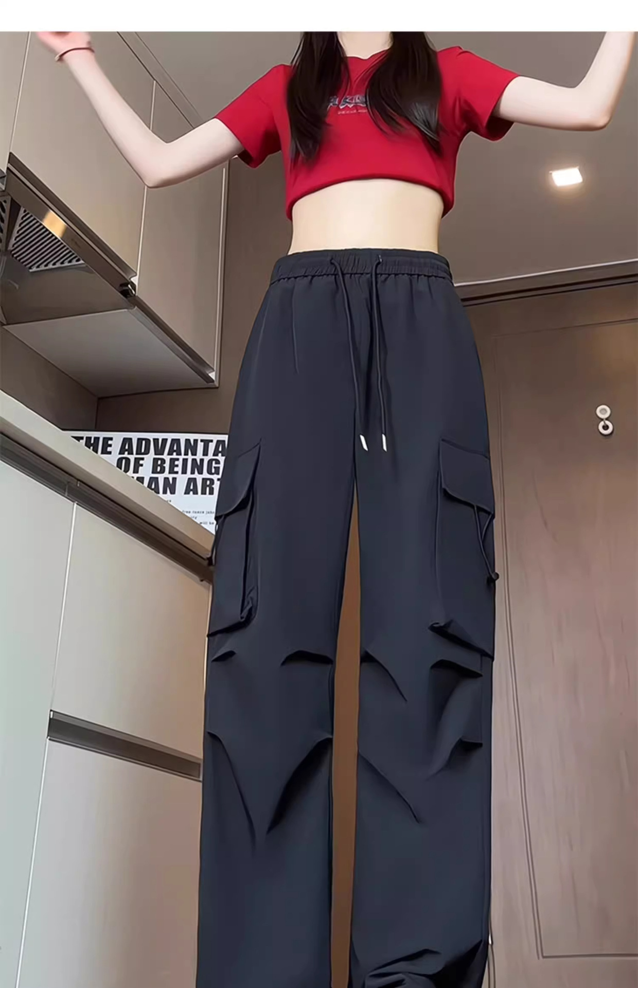 패션 트렌드 충전 바지 여성의 봄과 가을 2024 새로운 느슨한 스포츠 작업복 캐주얼 바지 산 긴 바지스토어 가기