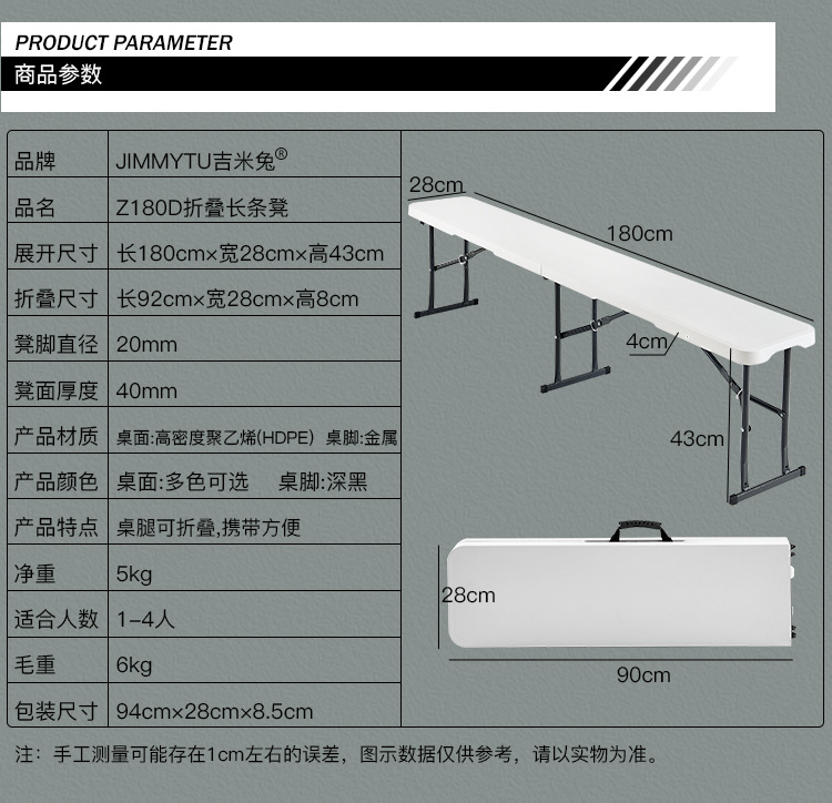 1.8 미터 접이식 의자 HDPE 야외 접이식 긴 의자 식탁 벤치 휴대용 프로모션 의자 신발 변경 의자스토어 가기