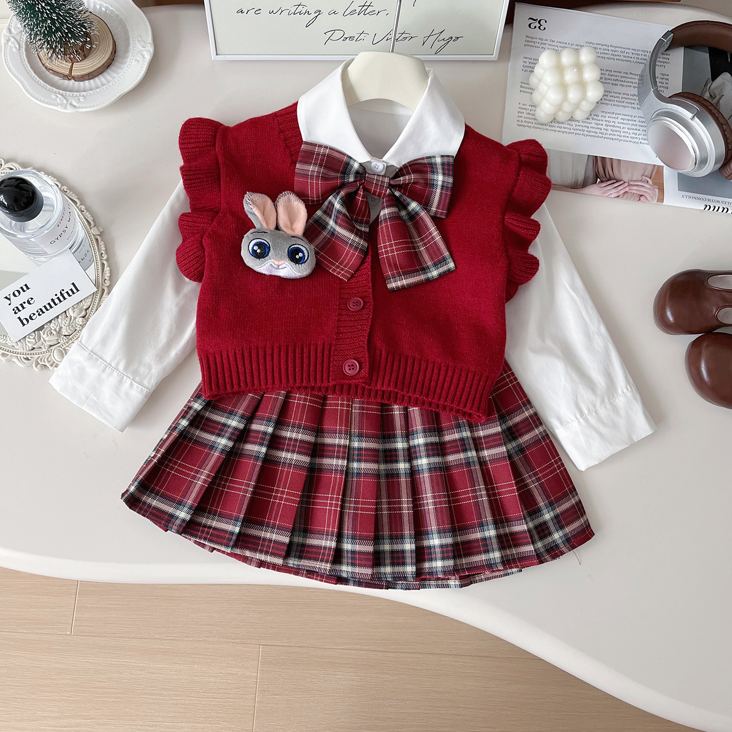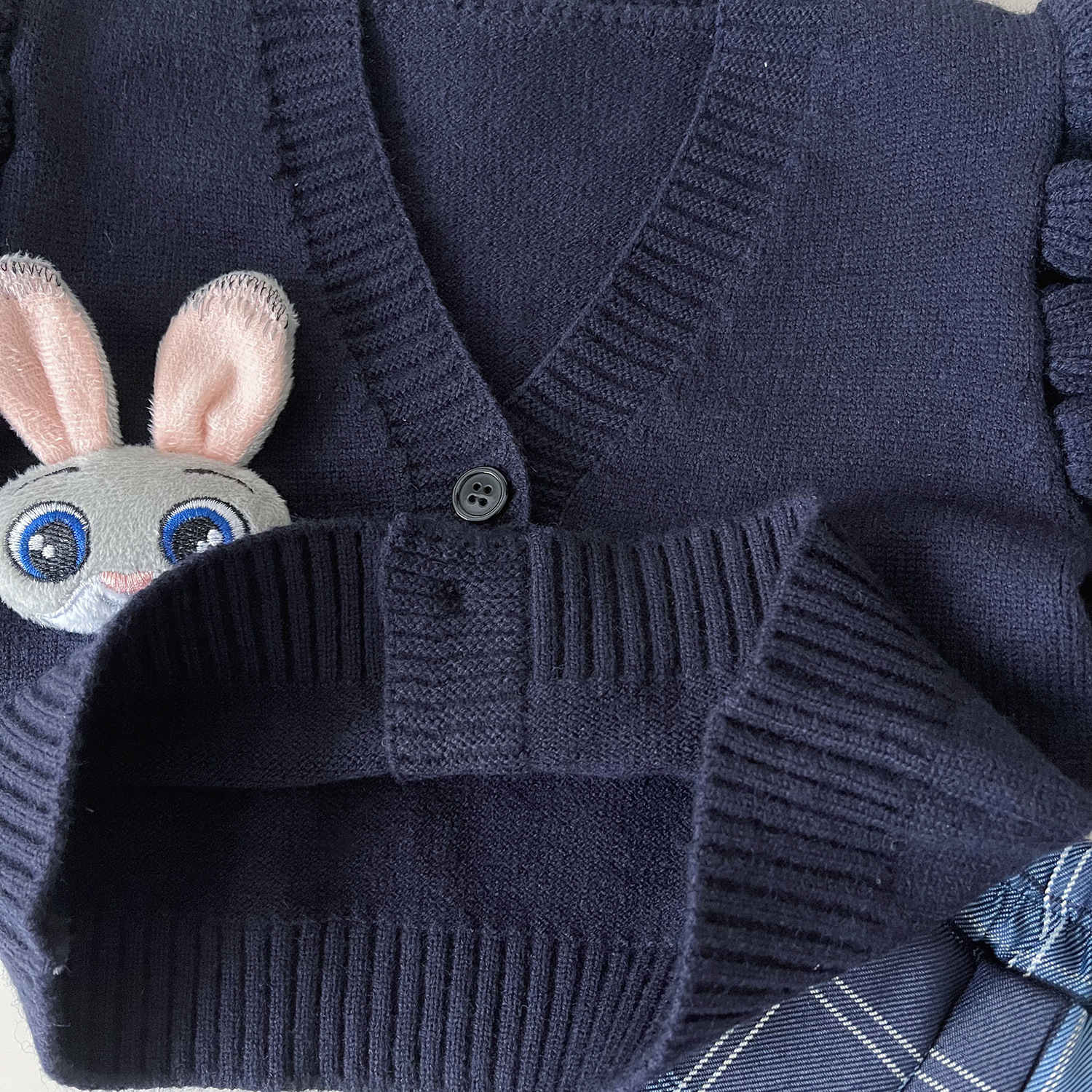 가을 2024 새로운 소녀 토끼 경찰관 JK 세트 소녀 아카데미 스타일 니트 3 피스 세트스토어 가기