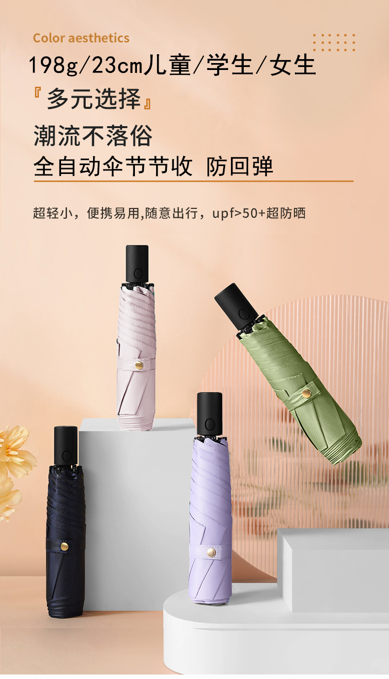 23cm日本超轻便防回弹儿童雨伞男女孩小学生晴雨两用折叠全自动伞